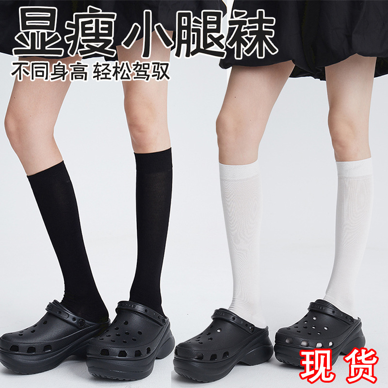 春と秋の高級感のある黒と白のふくらはぎの靴下の女性の基礎モデルの百合jkの筒の純色はやせています。
