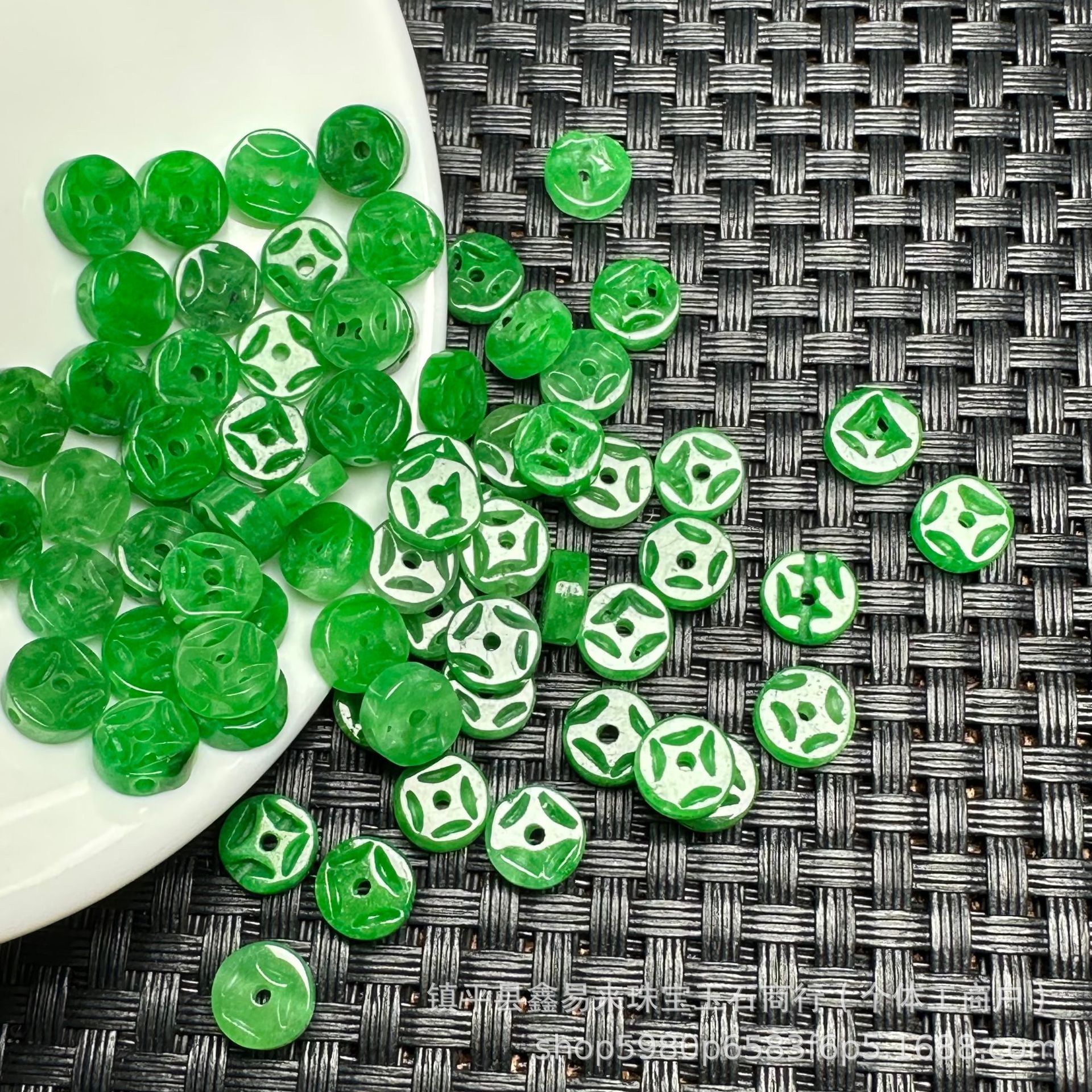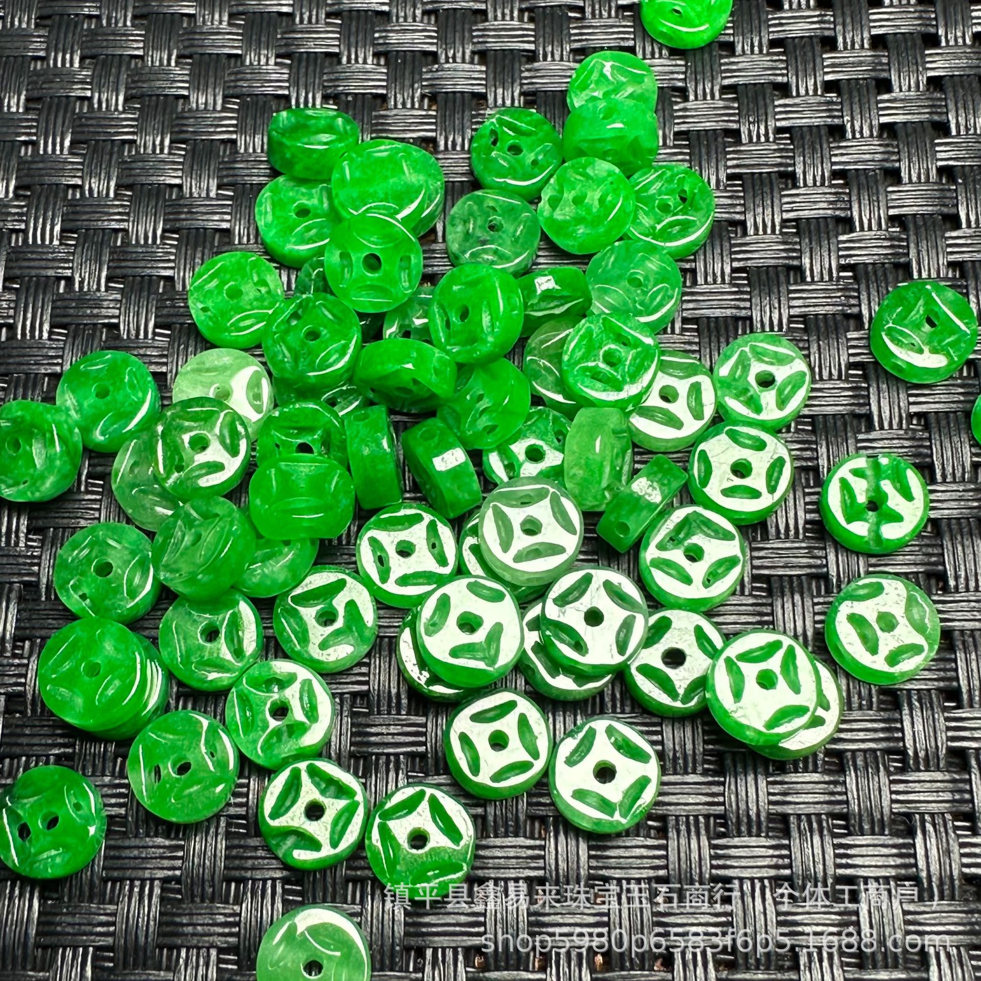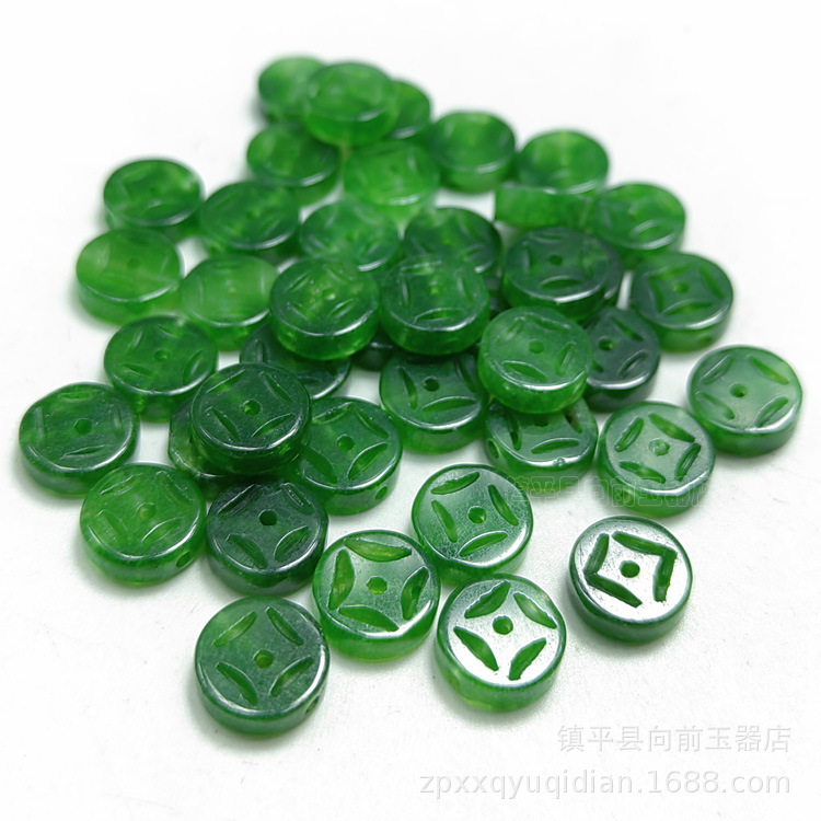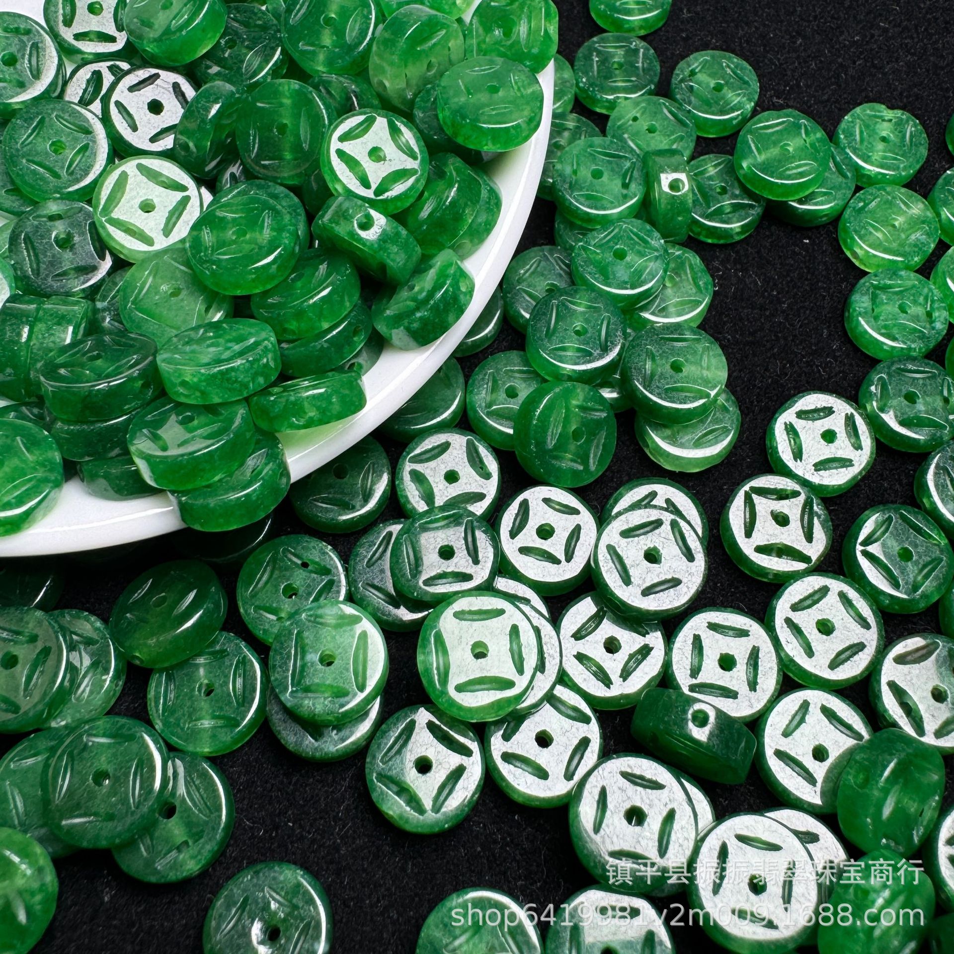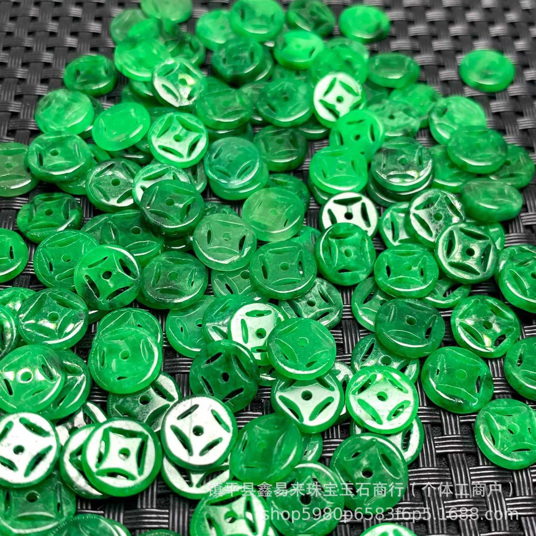 翡翠乾青10mm両面金銭ボタン玉散珠diyブレスレットネックレスアクセサリー玉アクセサリー卸売り