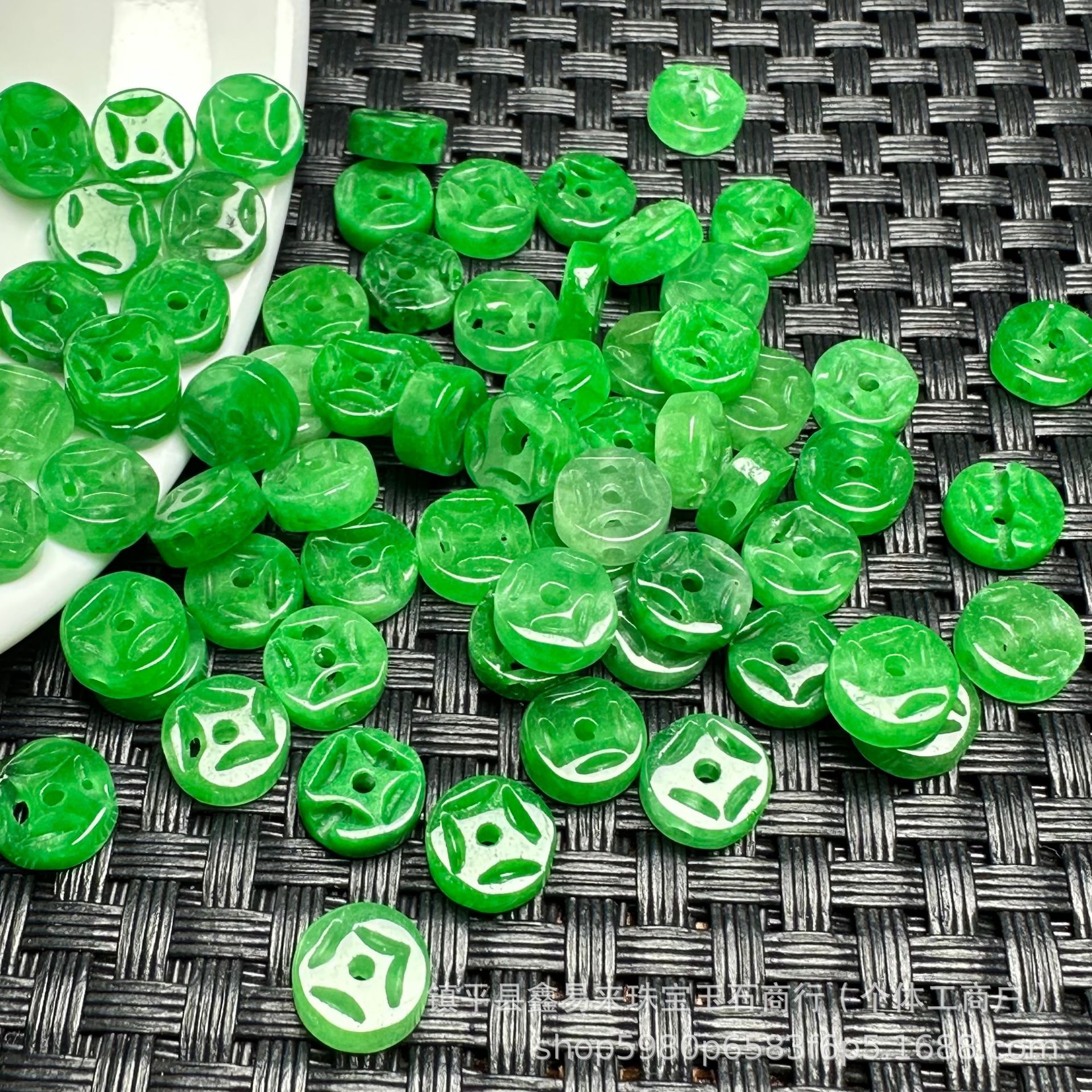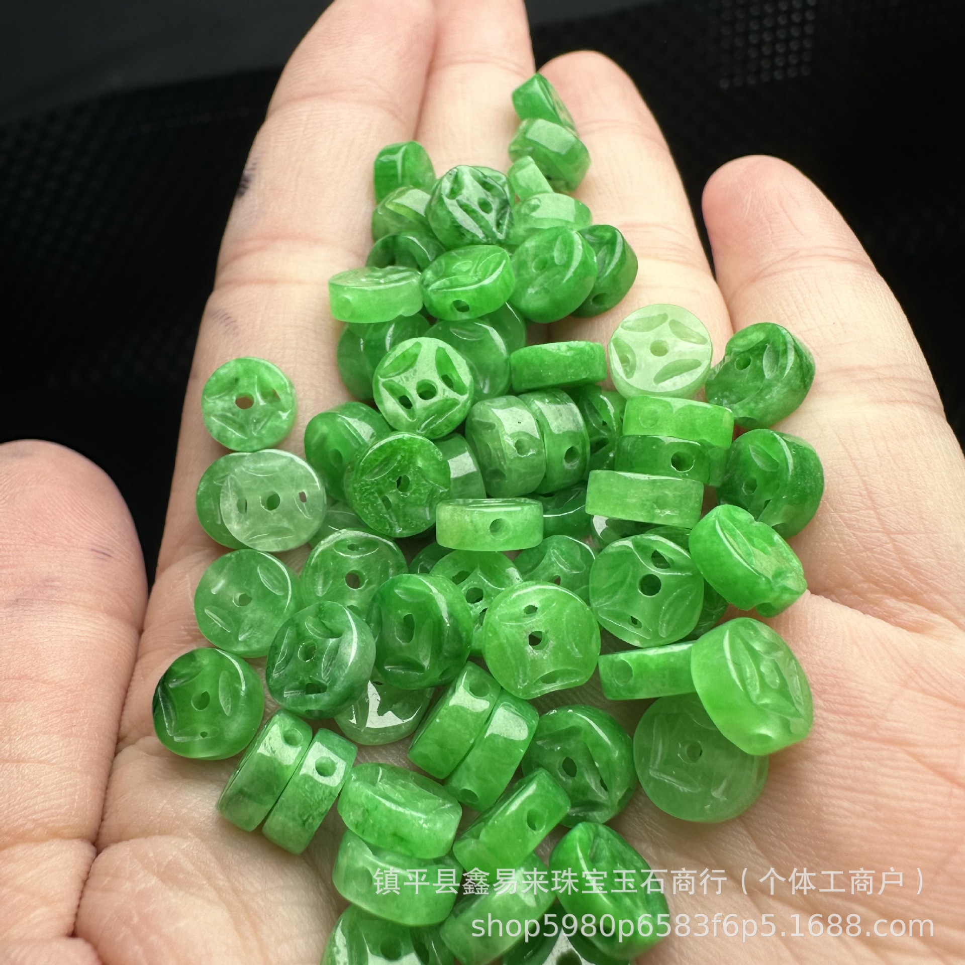 翡翠乾青両面金銭ボタン散珠DIYブレスレットネックレスアクセサリー珠玉玉厚金ボタン散珠