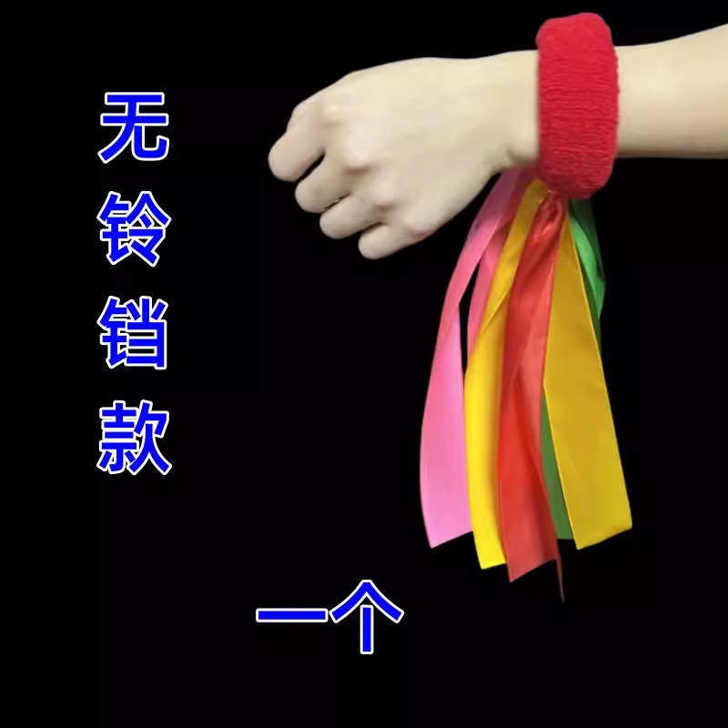 成人儿童幼儿园早操手腕丝带七彩带带摇铛铃道具弹力手环舞蹈表演