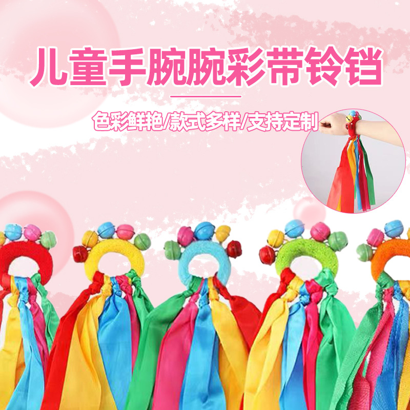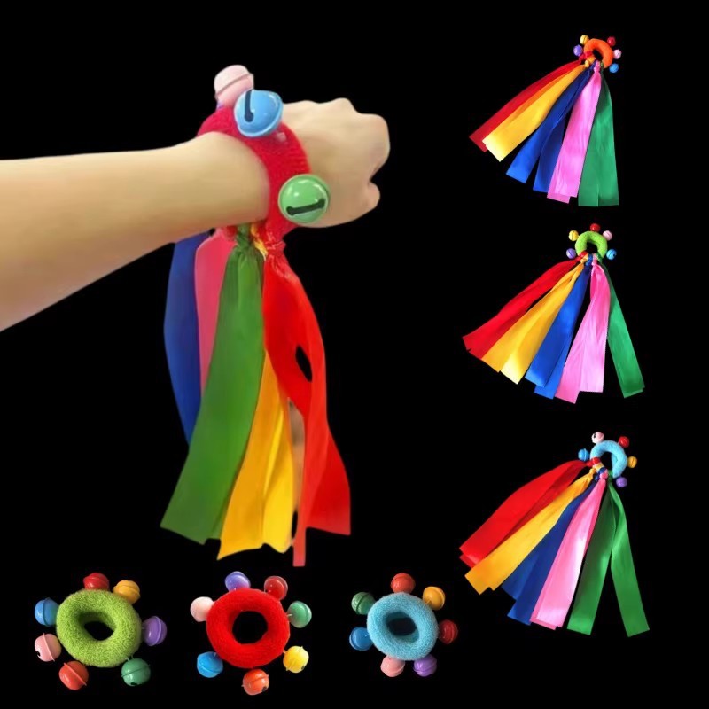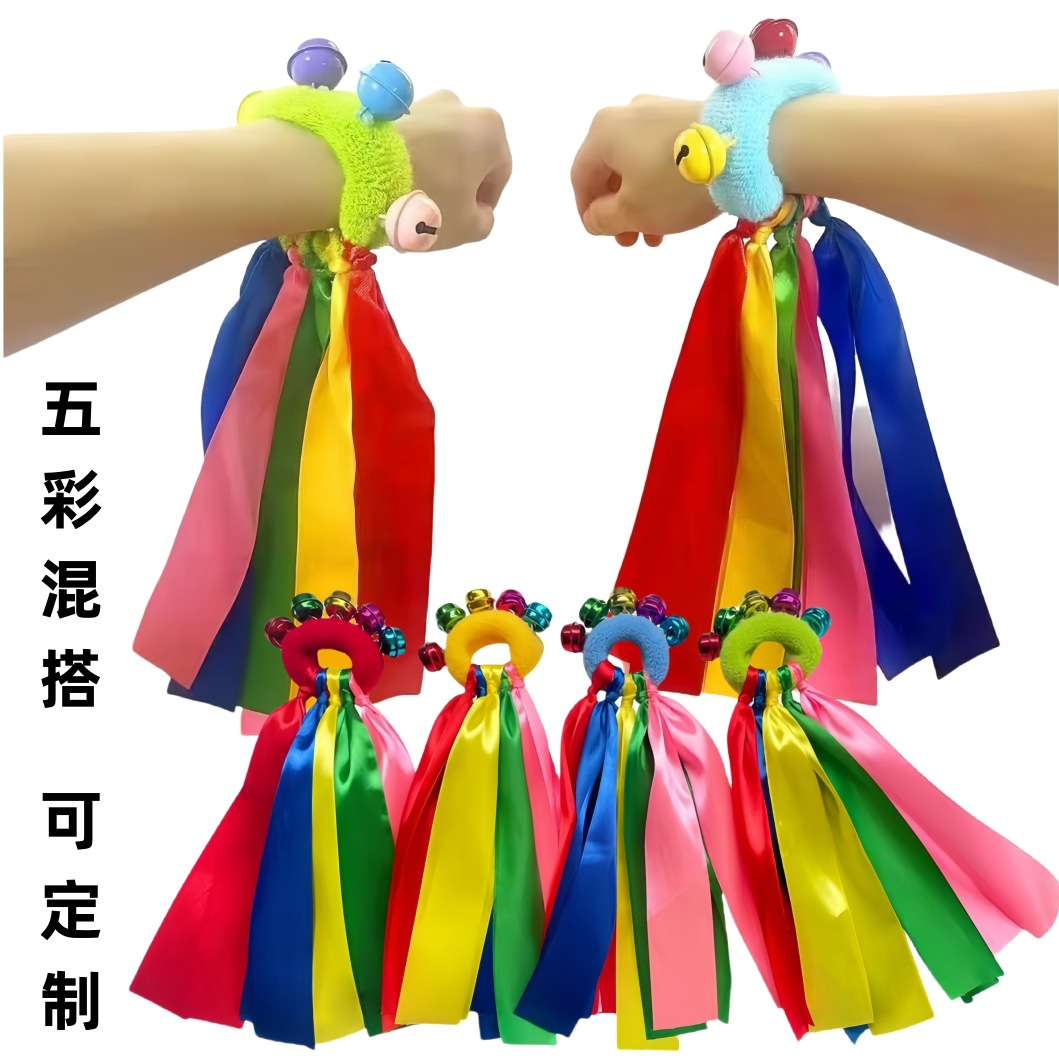 儿童彩带铃铛幼儿园早操手腕铃松紧圈环绳舞蹈表演运动会入场道具