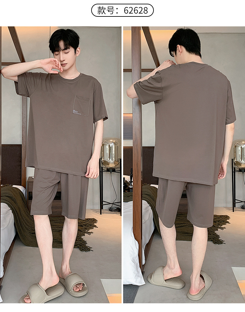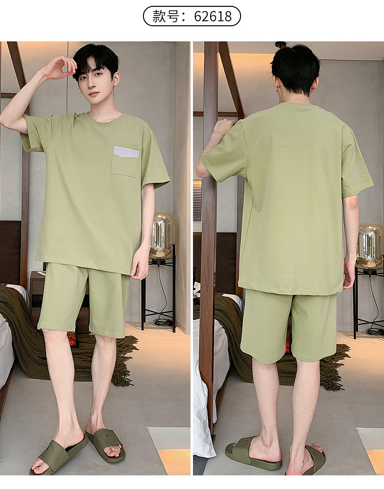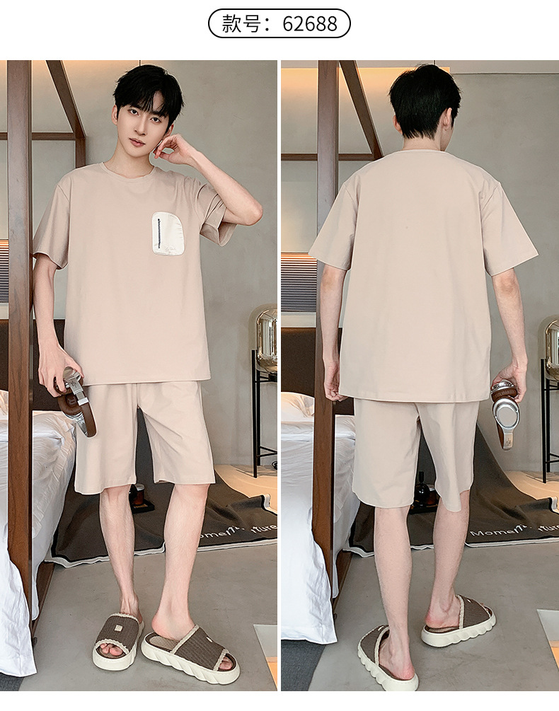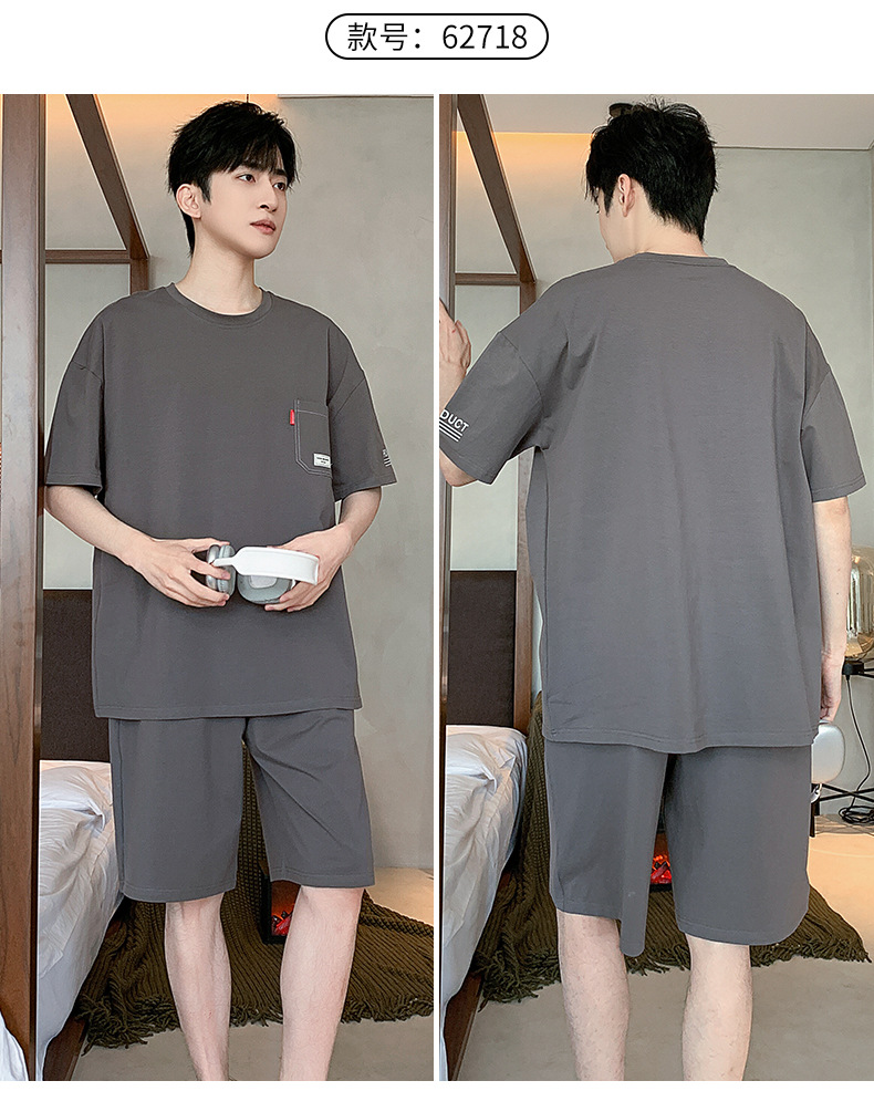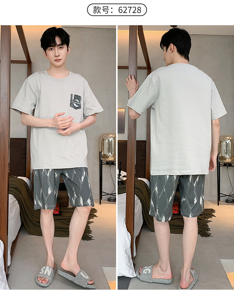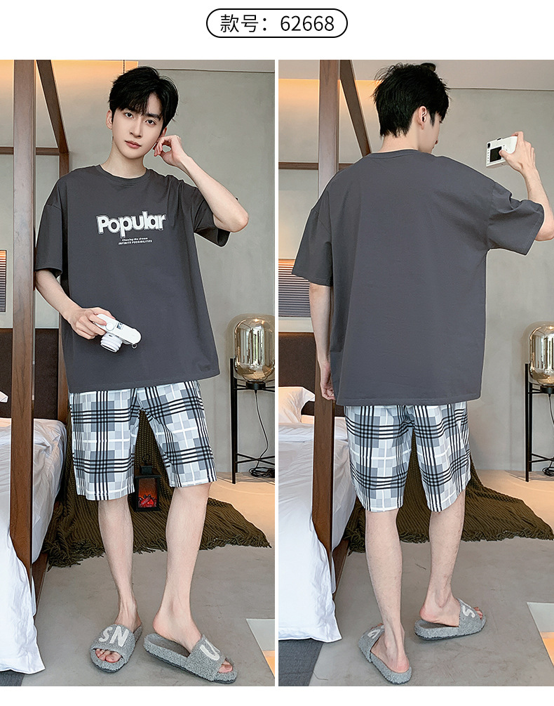 パジャマ半袖半ズボン男の夏の純綿の家庭服のストライプの青年の大きいサイズは家庭服の2つのセットを外に着ることができます。