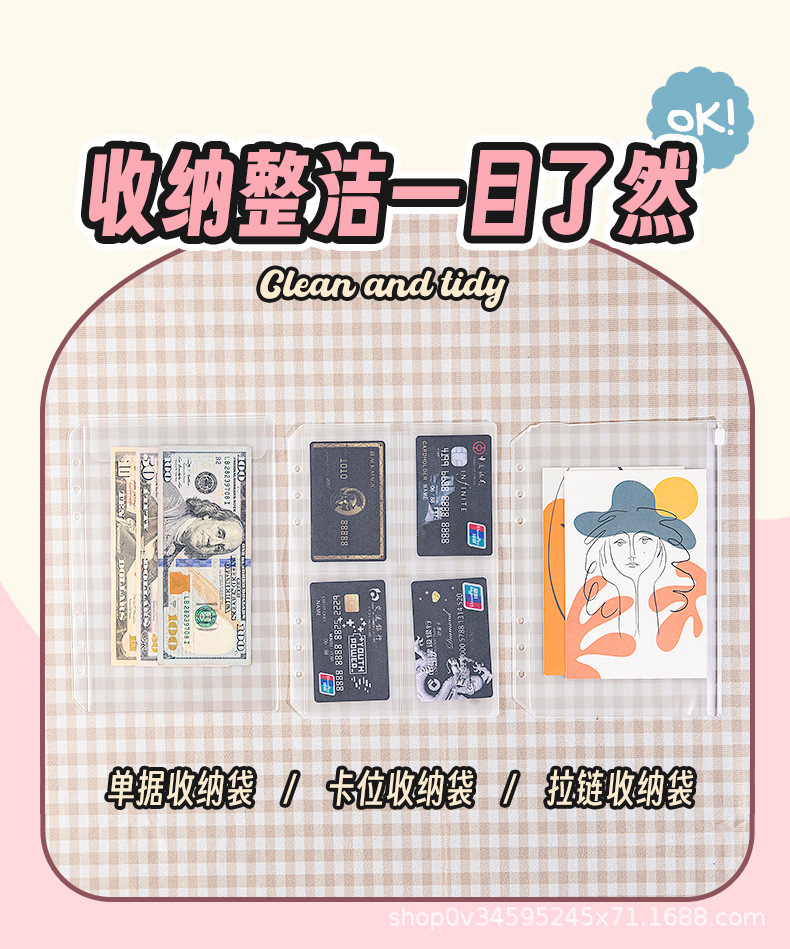 A6ルーズリーフ手帳ファスナー袋現金予算手帳ファスナー袋pvc収納袋財務計画士ノート