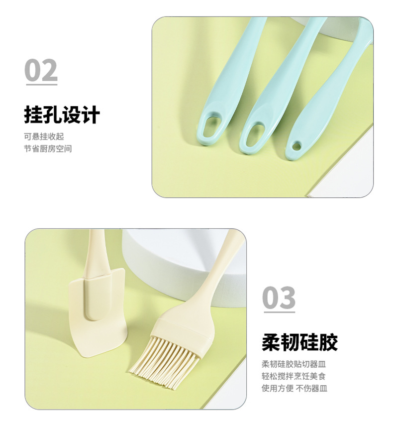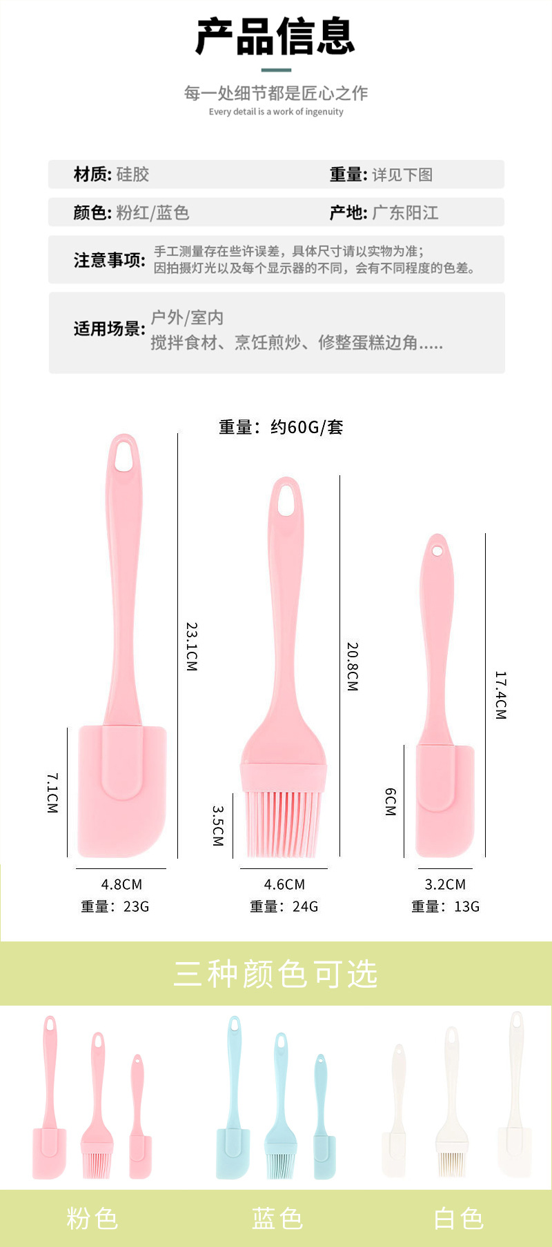 クロスボーダー新作ベーキングシリコンスパチュラ3点セット、ベーキングオイルブラシ、ケーキスパチュラ3点セット、在庫あり