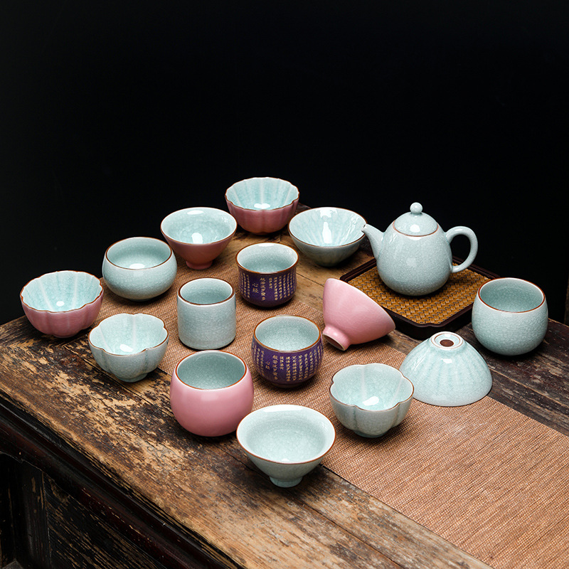 氷片汝窯主人杯単杯は個人品茗杯陶磁器ティーカップセットティーポット蓋碗を養うことができます。