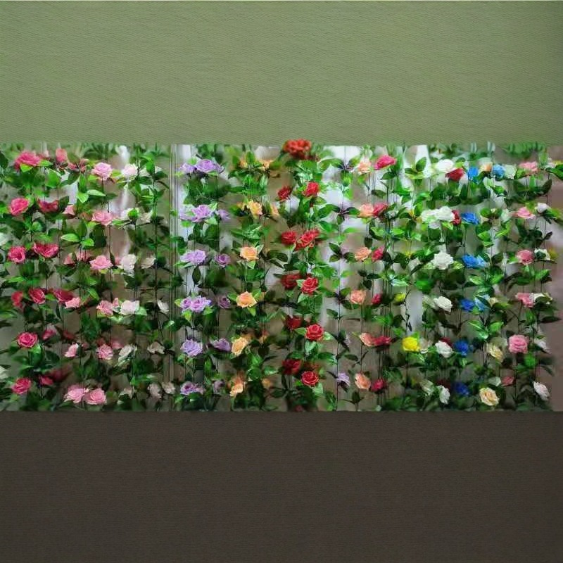 模擬九頭バラの花のつるプラスチック花のつる緑の葉造花装飾パイプ装飾空調パイプ装飾