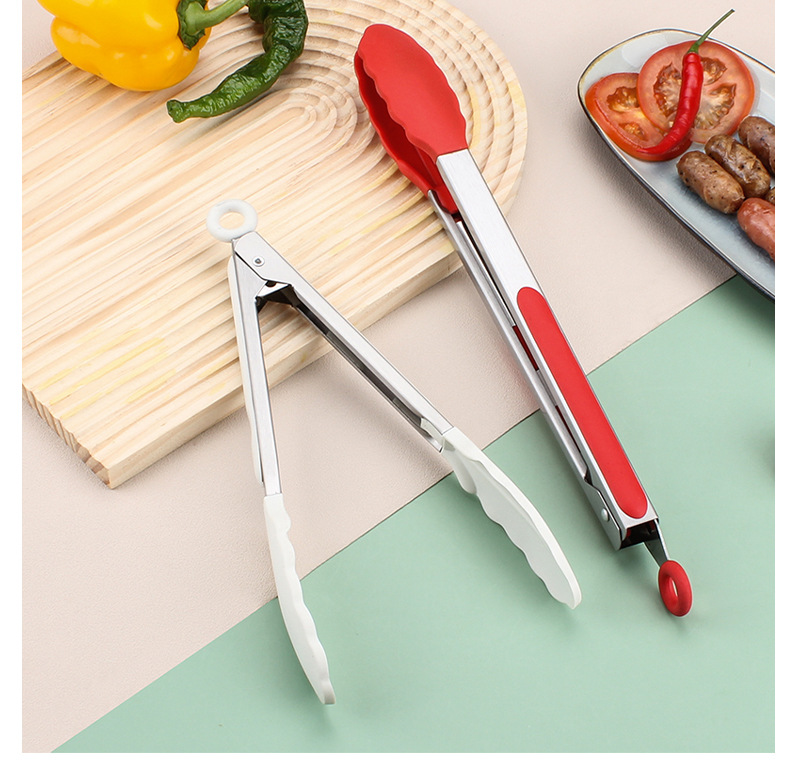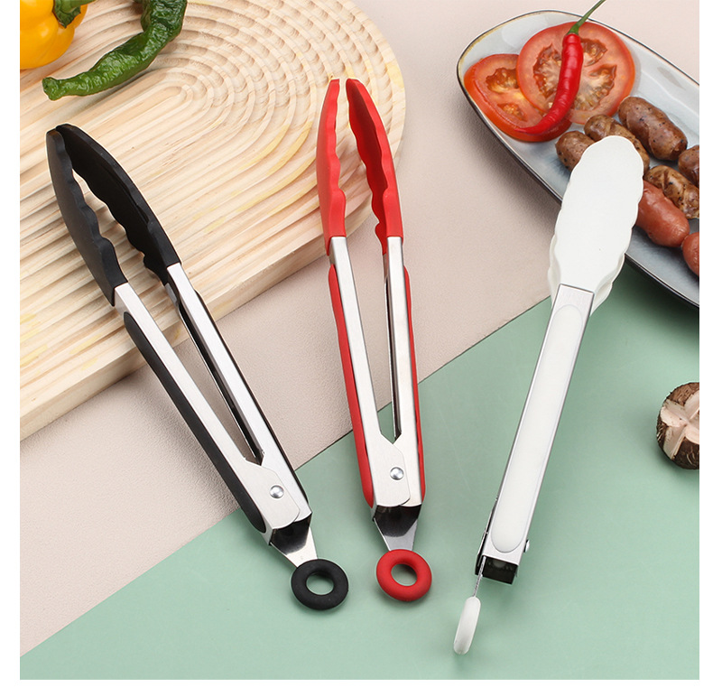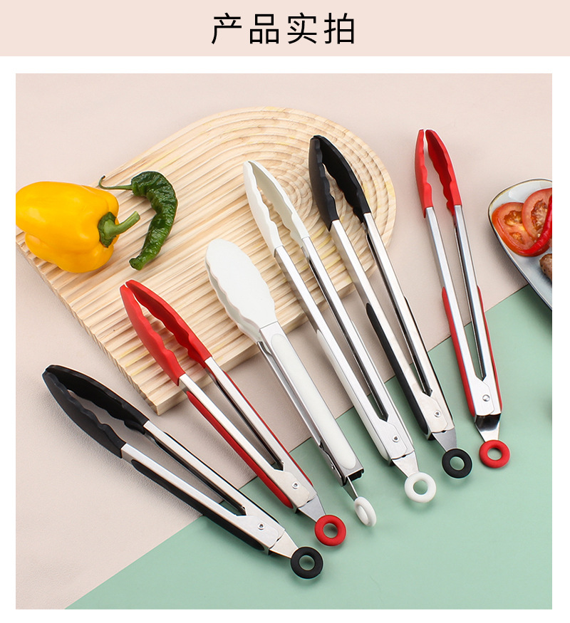7インチステンレス食品クリップバーベキュークリップステーキクリップクリスマス食品クリップ多機能シリコン食品クリップ