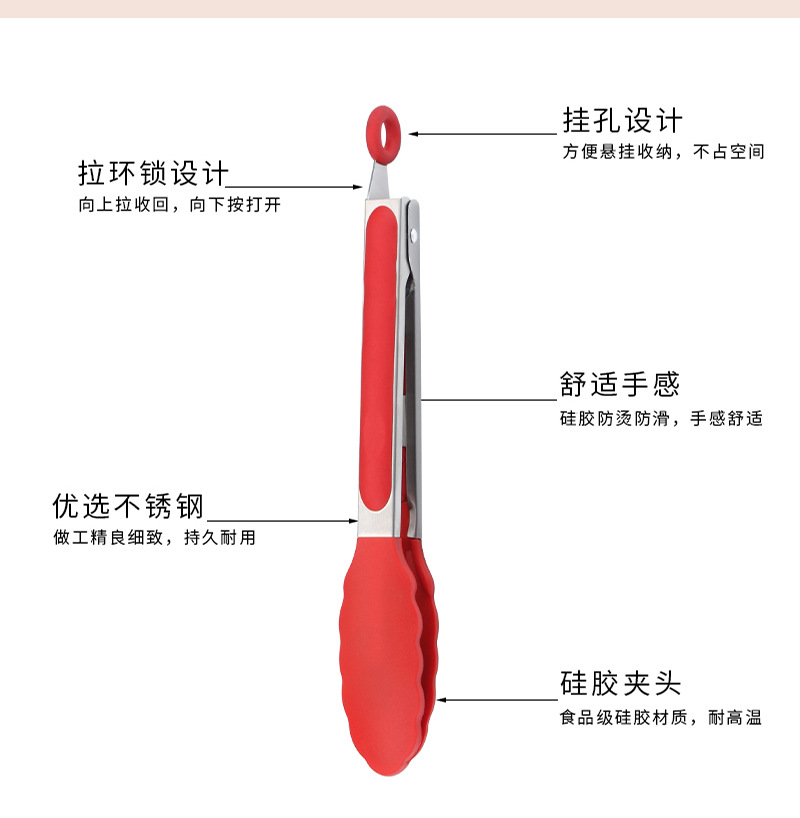 国境を越えたシリコン製フードクリップ、家庭用キッチンステンレス製韓国風ステーキビュッフェ多機能クリップセット、高温耐性
