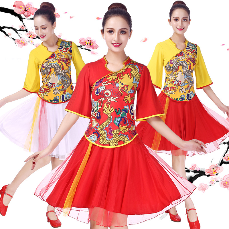 姿春夏広場舞服新作セット民族舞古典舞演出服ダンスダンスダンス女