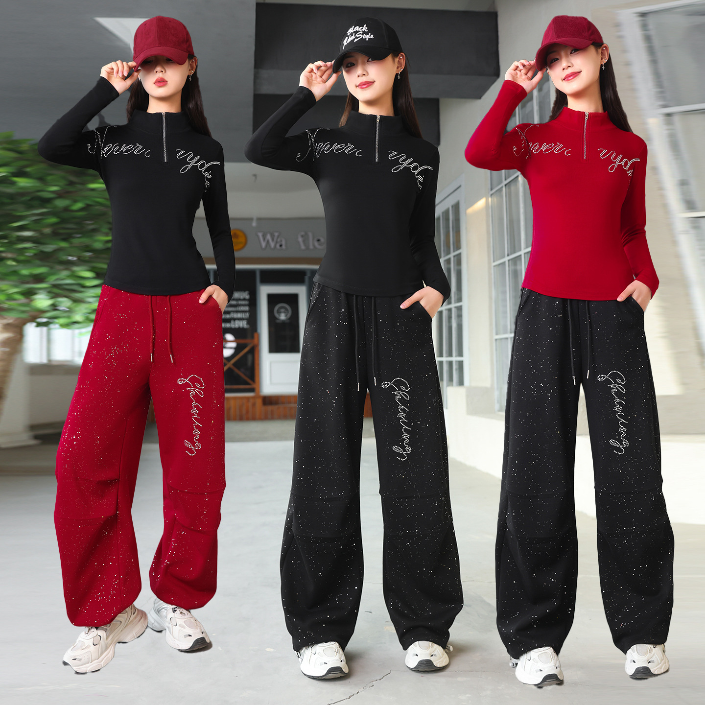 字母水晶钻秋冬新款磨毛上衣显瘦时尚广场舞服长袖立领2521+1037