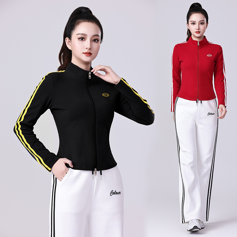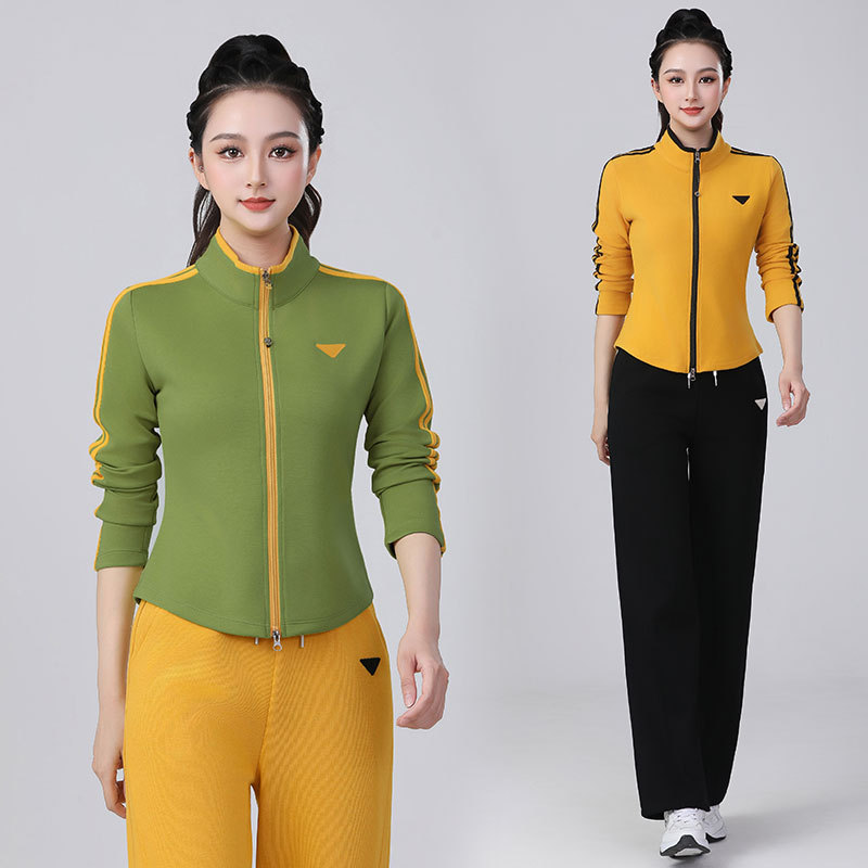 2023秋冬新作広場舞服セット小高襟長袖綿底シャツ成人女性運動レジャー服