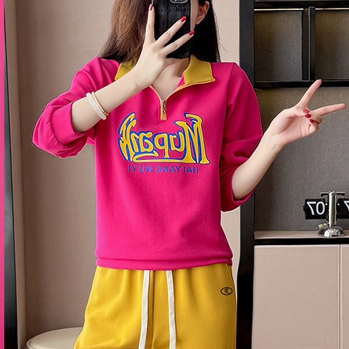 2025 春夏の新ファッション多用途痩身スポーツコントラストカラージッパーボトムレディース長袖スーツ