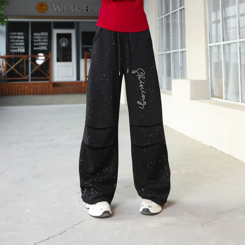 广场曳步舞休闲长裤秋季新款运动宽松复合棉洒银抽绳弯刀卫裤
