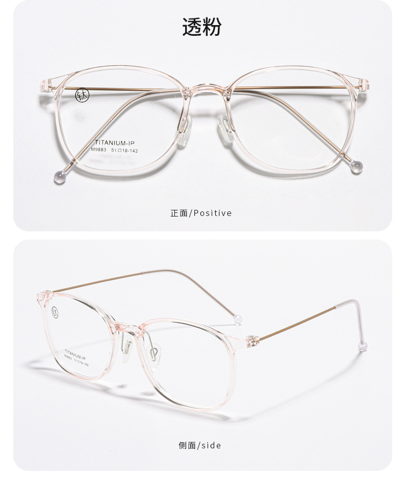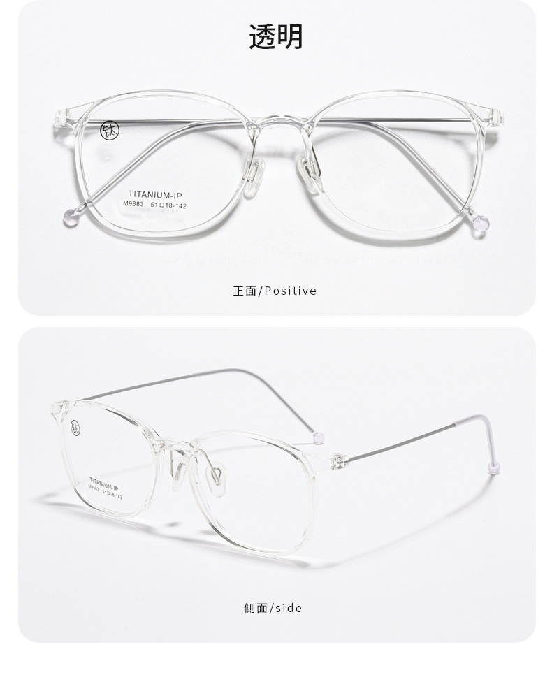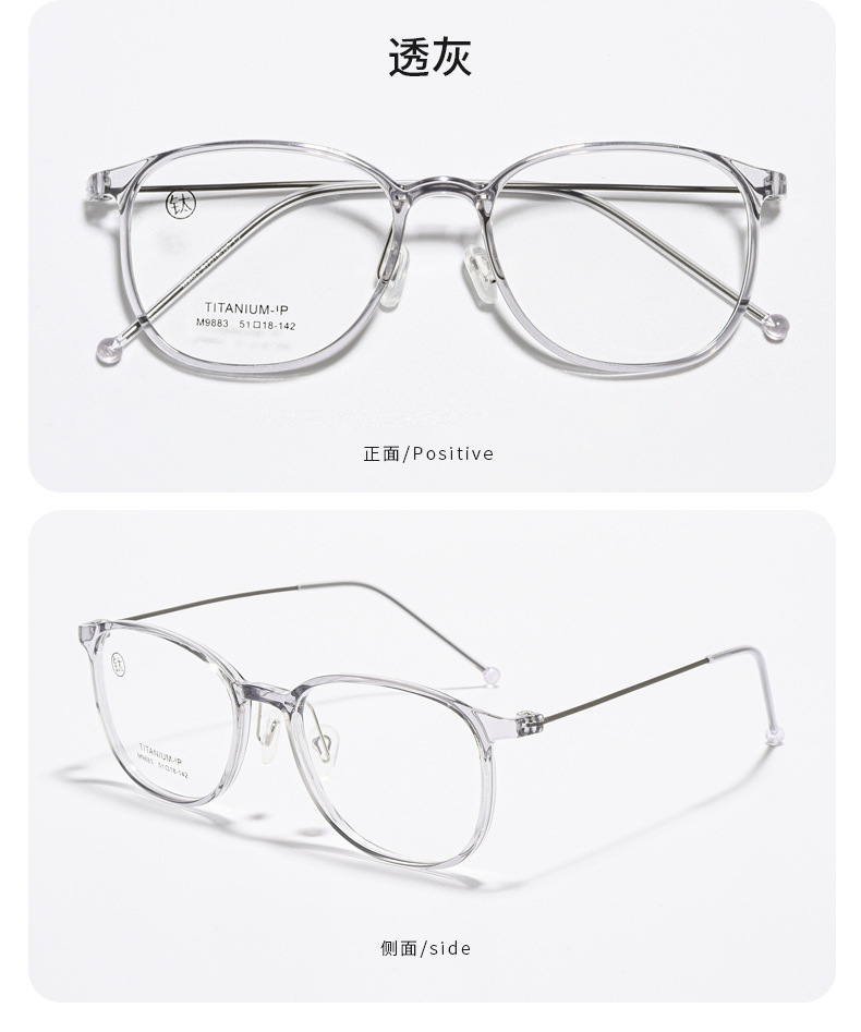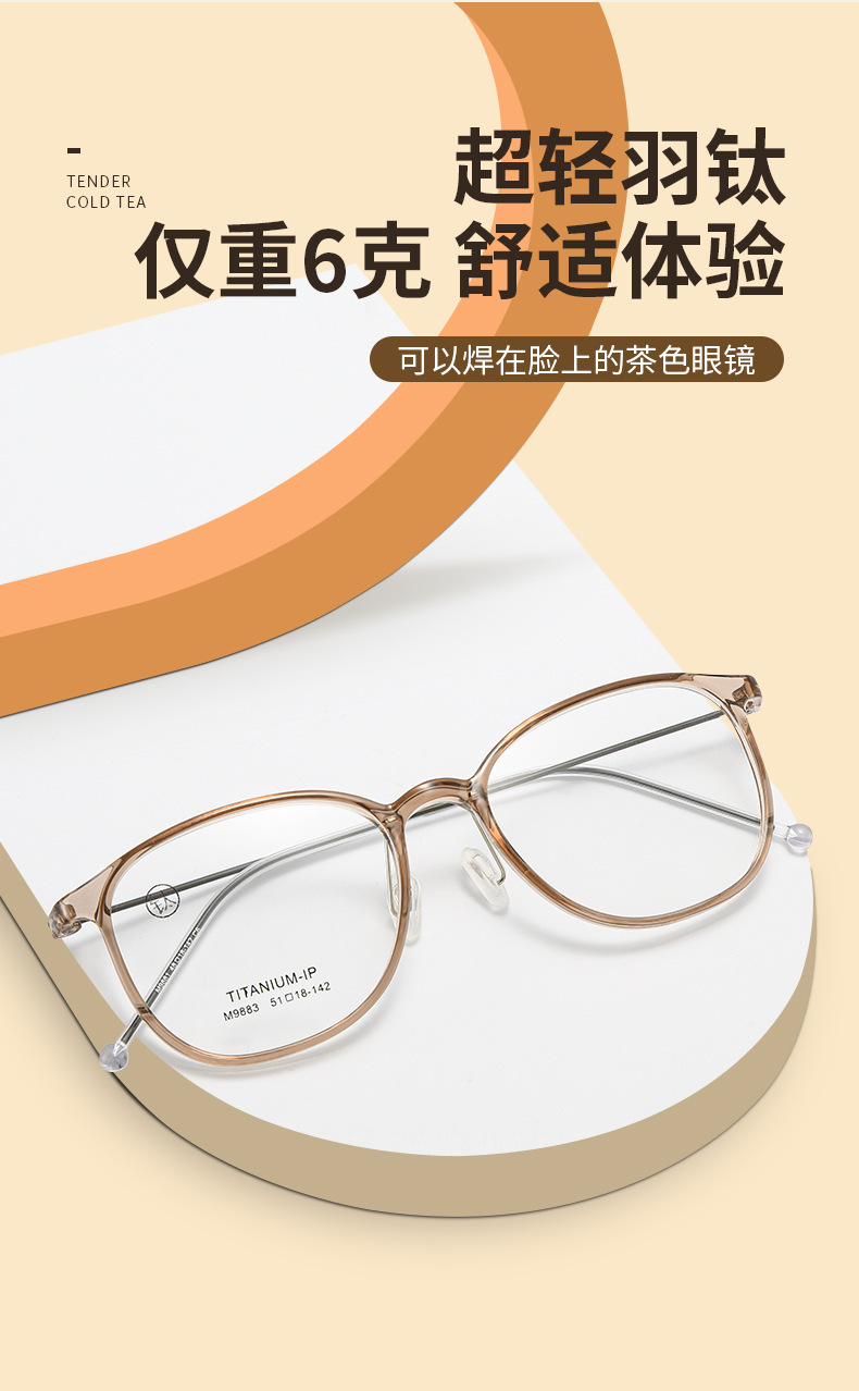 韓国の羽チタンの韓系のすっぴんのメガネのフレームは白くて復古的な小さい枠が鏡の丹陽の卸売りの9883を配合することができます。