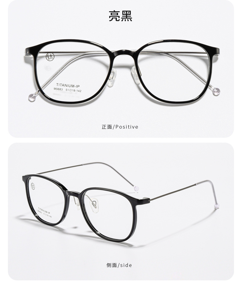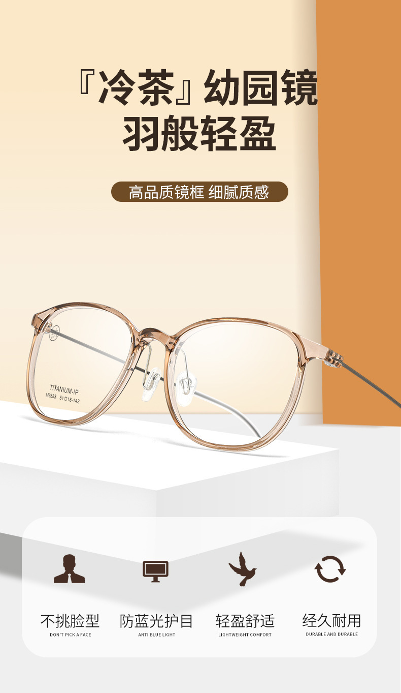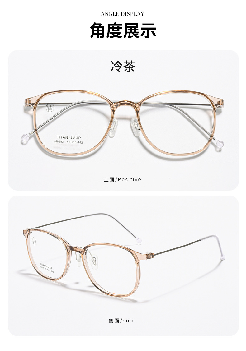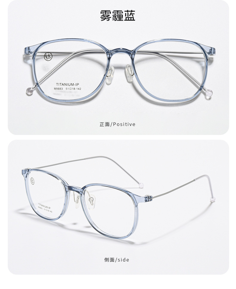 韓国の羽チタンの韓系のすっぴんのメガネのフレームは白くて復古的な小さい枠が鏡の丹陽の卸売りの9883を配合することができます。