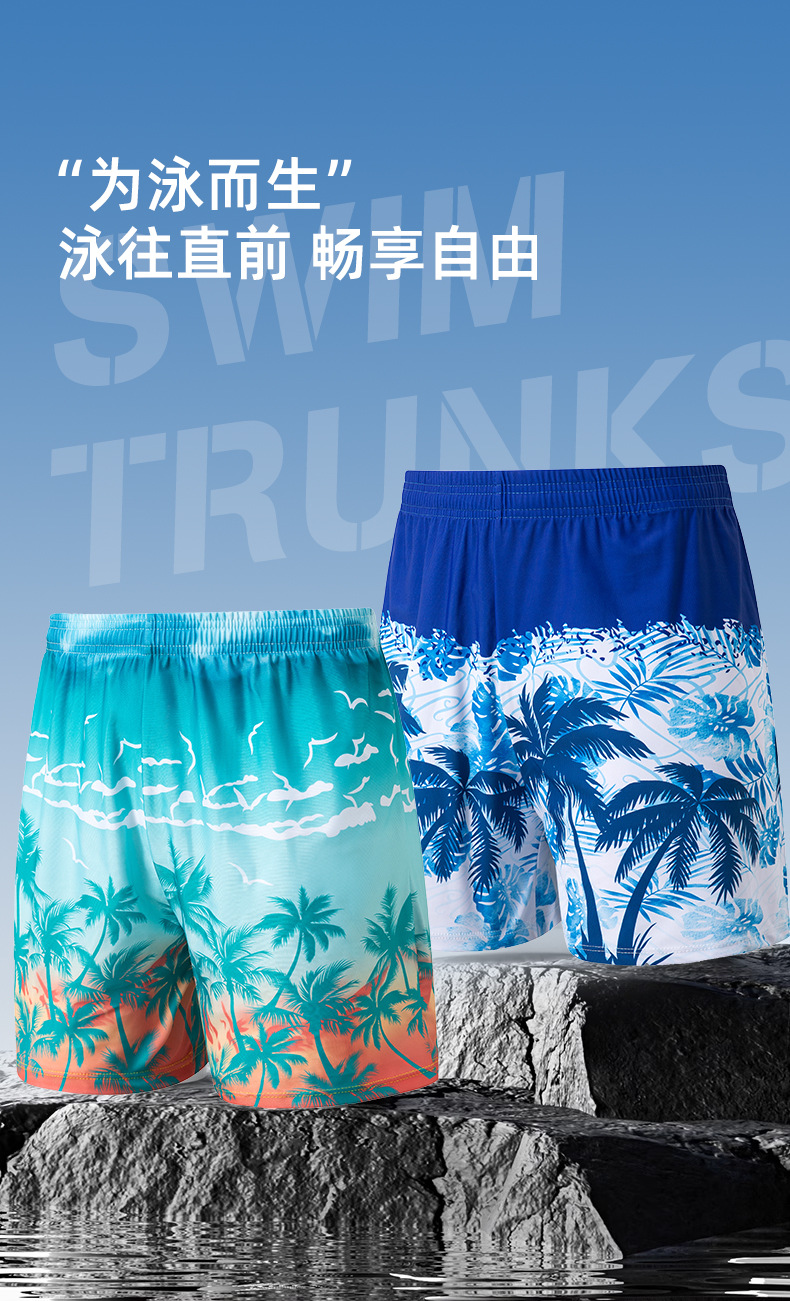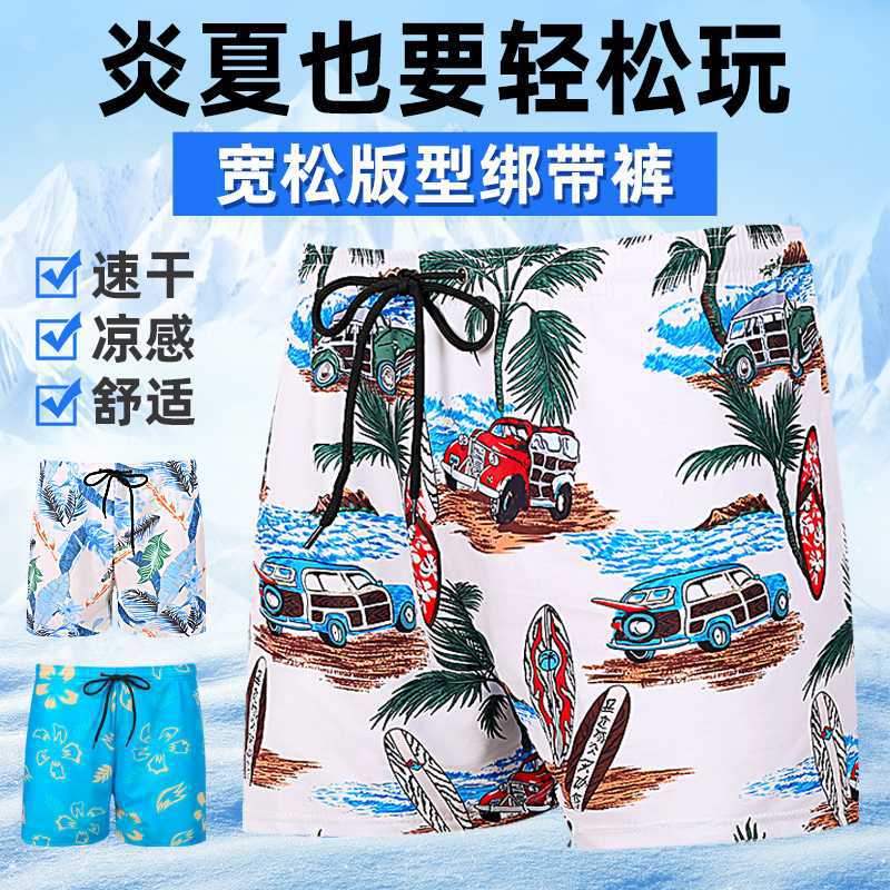 男士泳裤防尴尬宽松平角裤绑带裤成人印花海边休闲短裤亚马逊新款