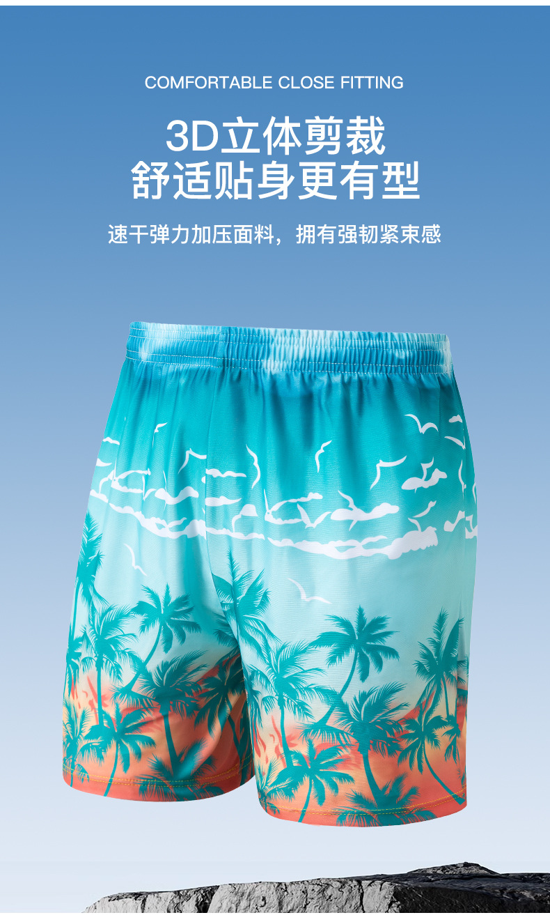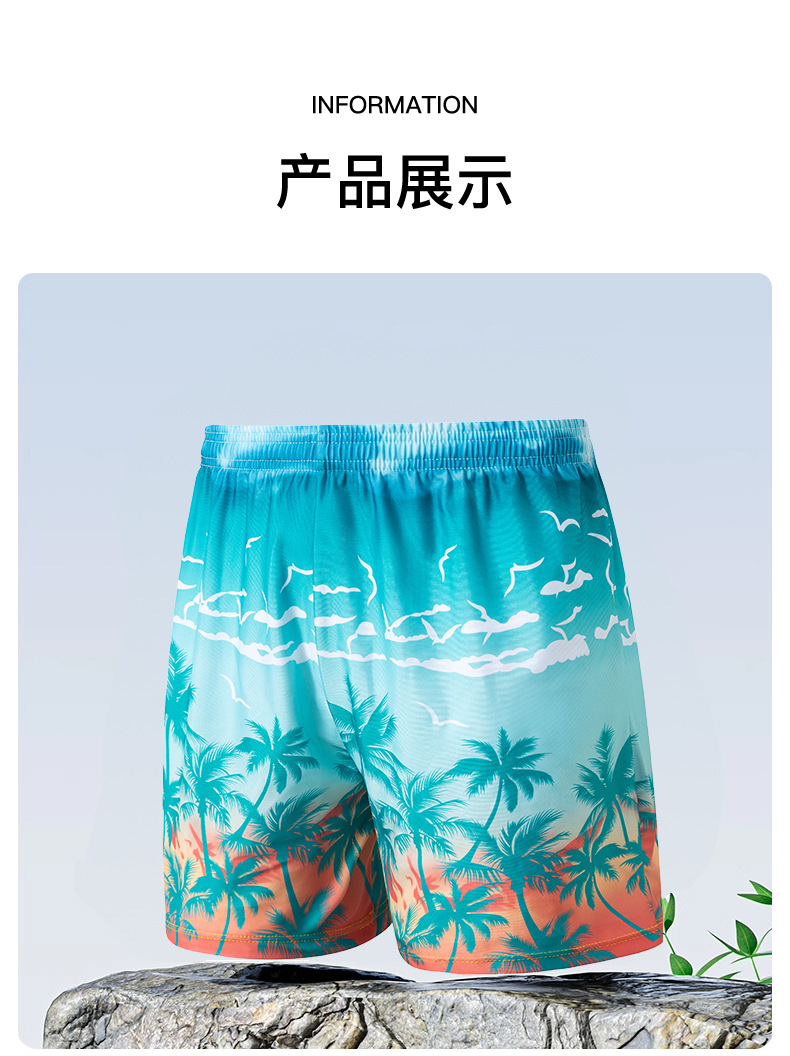 夏のメンズビーチ水着、おしゃれなプリント柄スポーツショーツ、ゆったりとした露出防止四角パンツ、越境販売