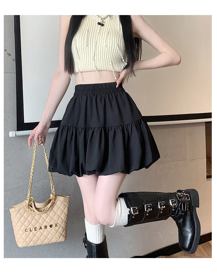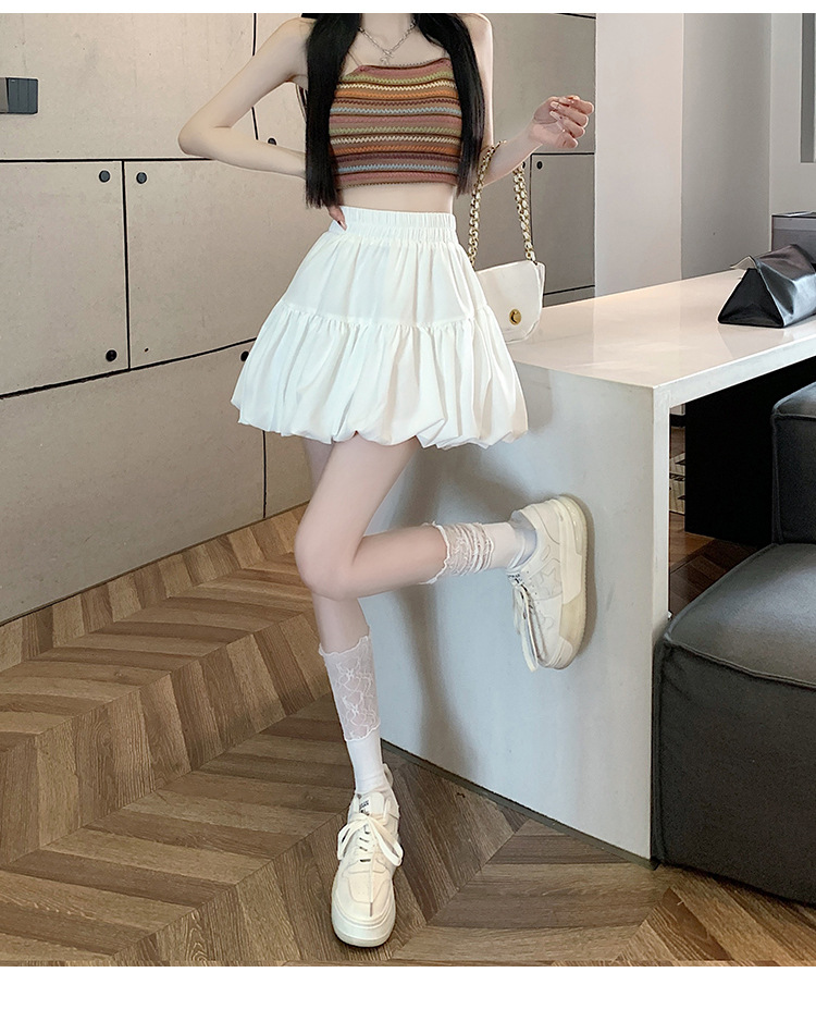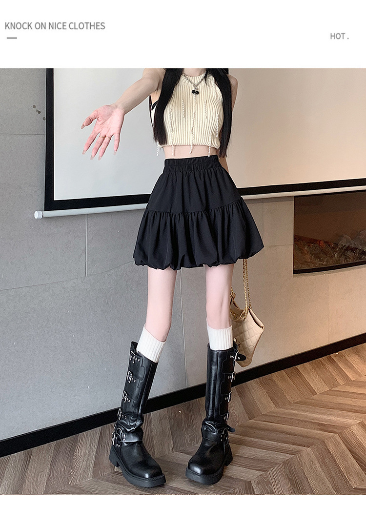 小柄な背の高い腰の甘いデザインのつぼみのスカートの2024夏の新型のしわは蓬蓬の半身のスカートの女性に似合います。