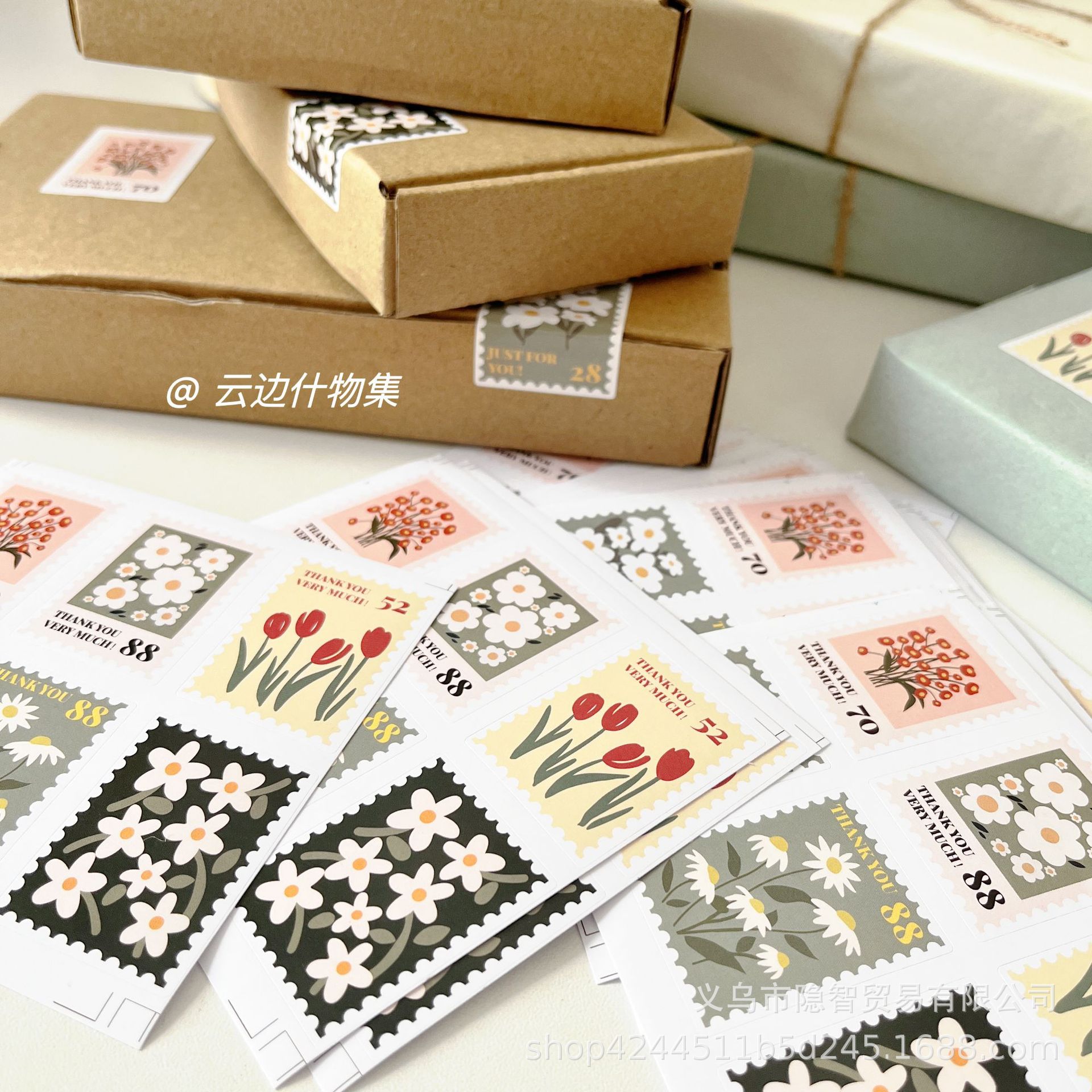 レトロな花の切手の正方形のシールの贈り物の包装の密封はベーキングケーキのシールを貼って贈り物の装飾のラベルを貼ります。