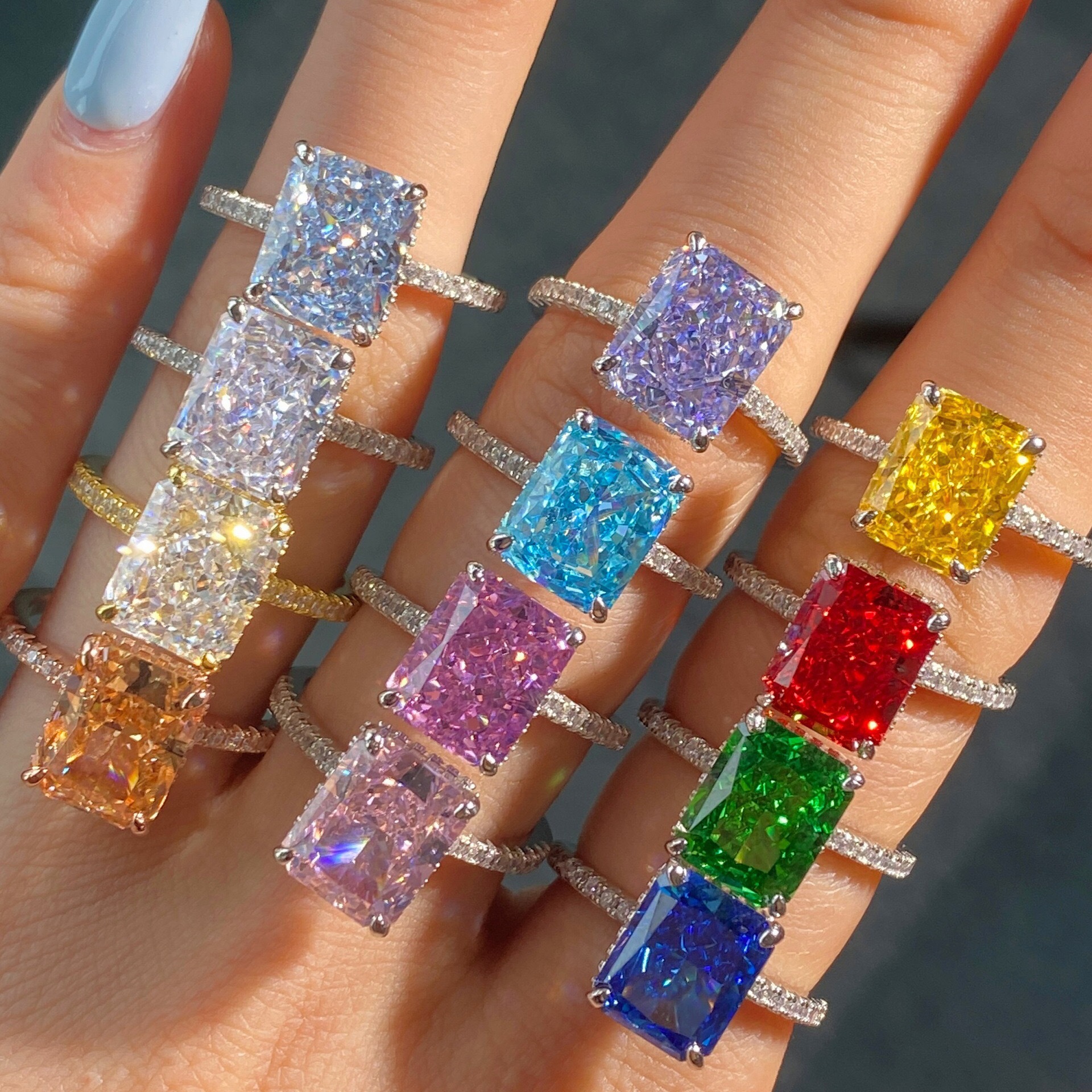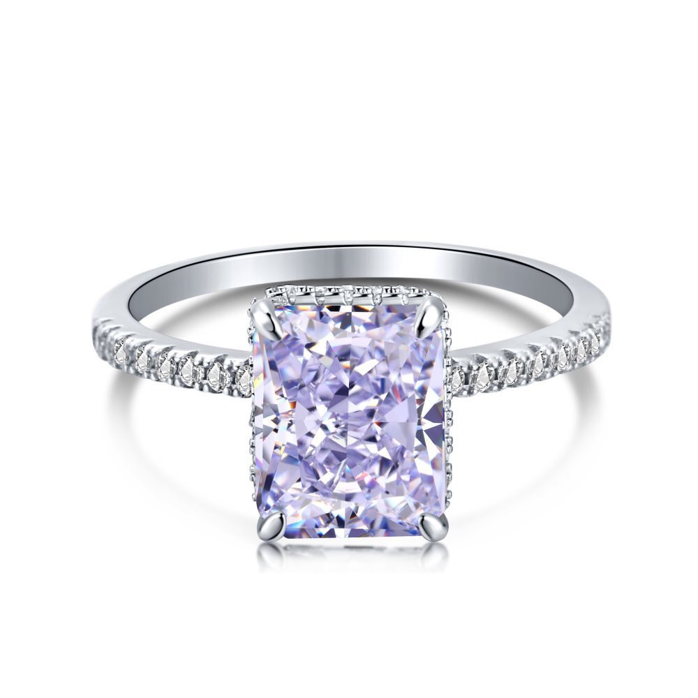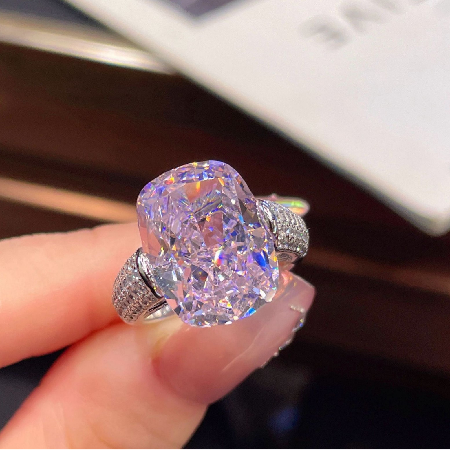 ジルコンがちりばめられた女性用リング、絶妙なピンクの太いスクエアアイスフラワーカットジュエリー、メーカー出荷、外国貿易で売れ筋