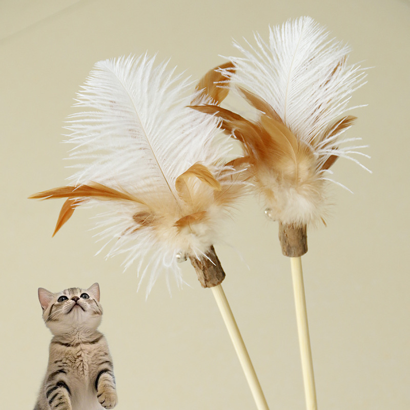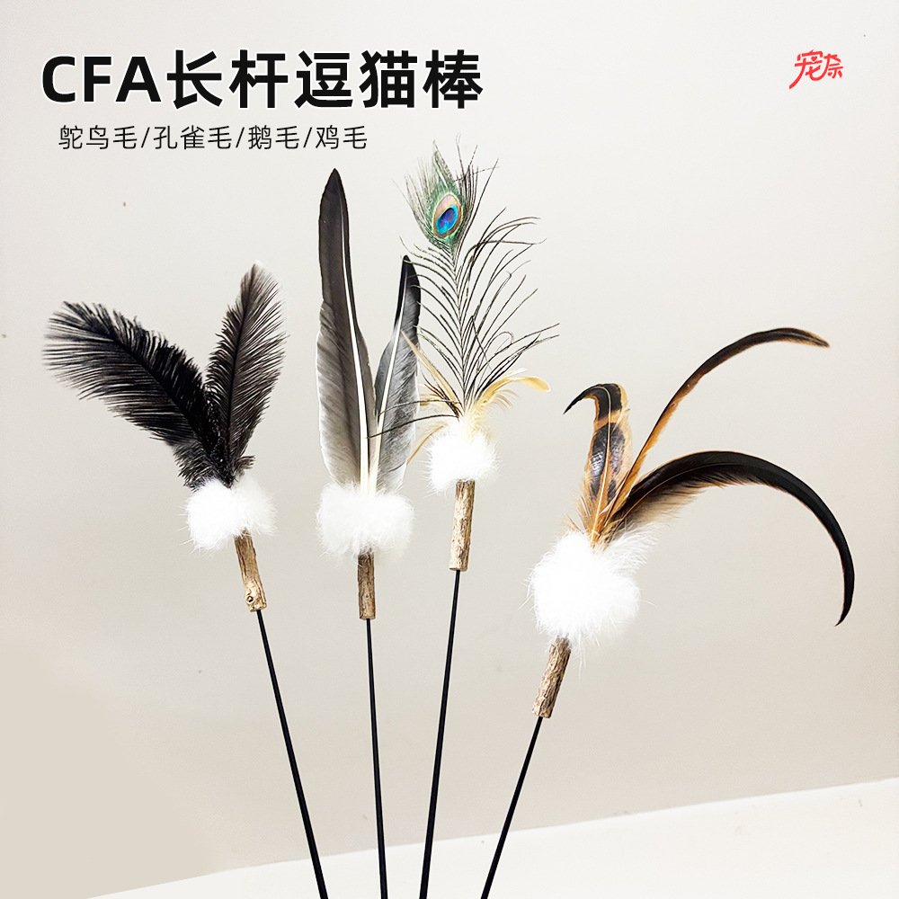 CFA逗猫棒长杆兔毛自嗨木天蓼磨牙棒鸵鸟羽毛替换头猫咪玩具