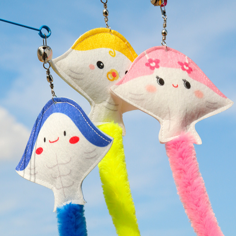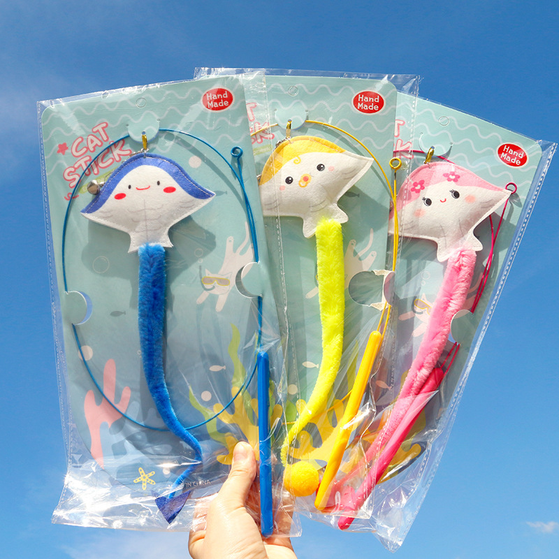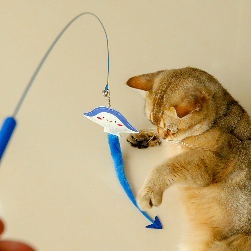 オリジナル海洋魚魔鬼魚鋼線の長い棒が猫の棒をからかっています。