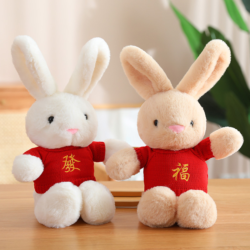 服を着ているセーターのウサギのぬいぐるみの吉祥ウサギは財福の人形を出して宝の公仔に入って贈り物の卸売りを有効にします。