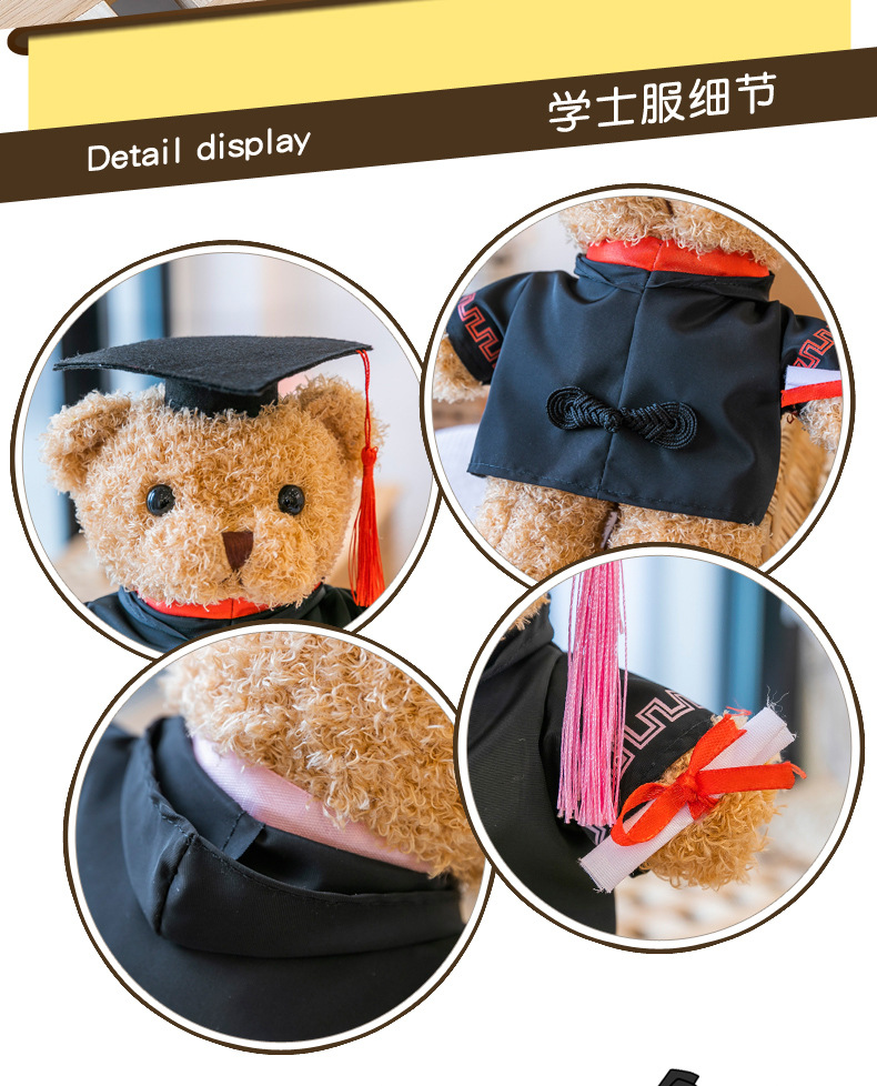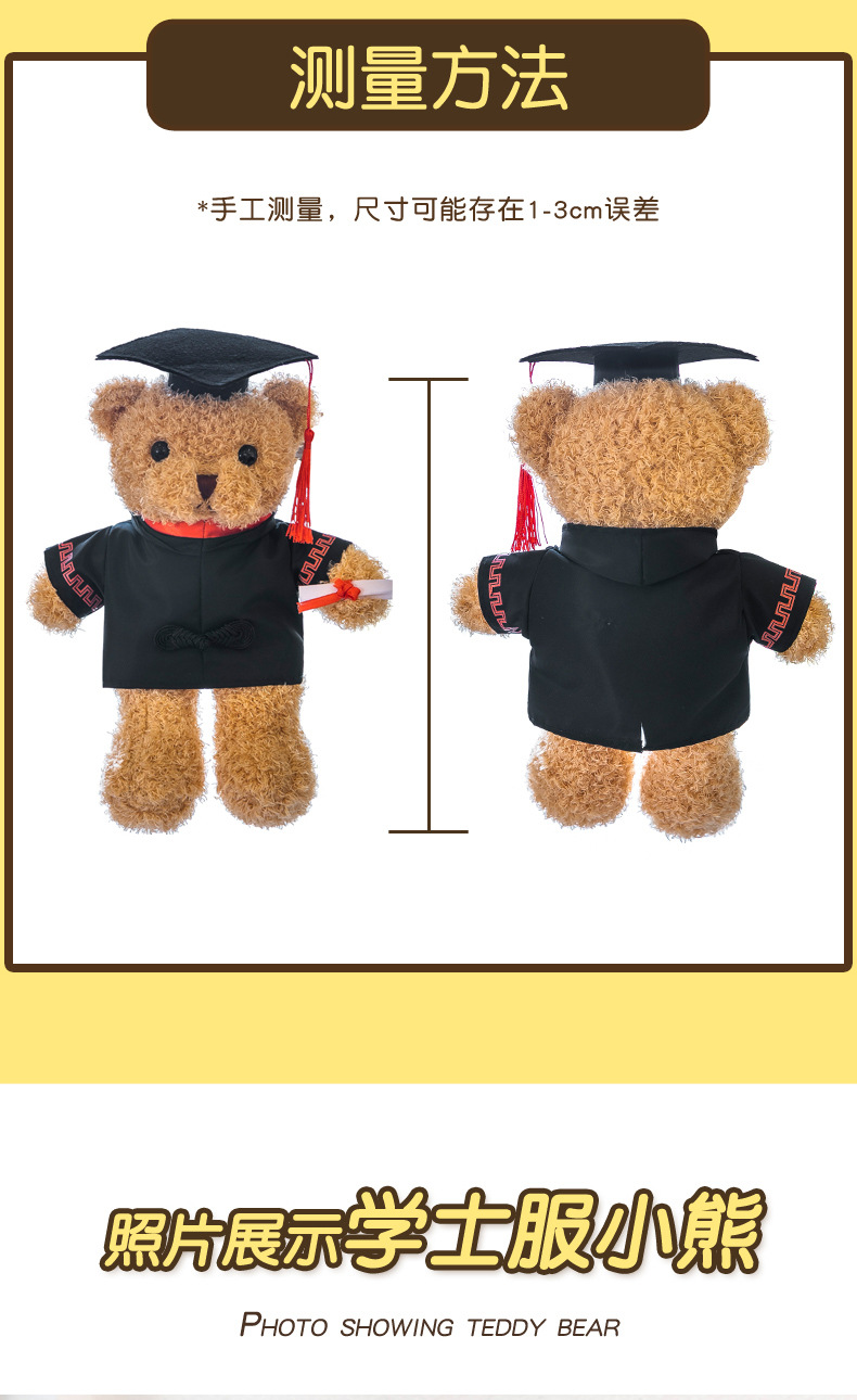 座版博士帽テディベアぬいぐるみ卒業シーズンプレゼント修士制服人形校章ロゴ