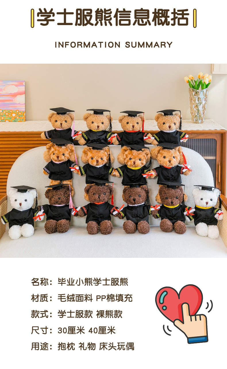 卒業シーズン博士帽熊ぬいぐるみテディベア人形学士士服記念プレゼントLOGO