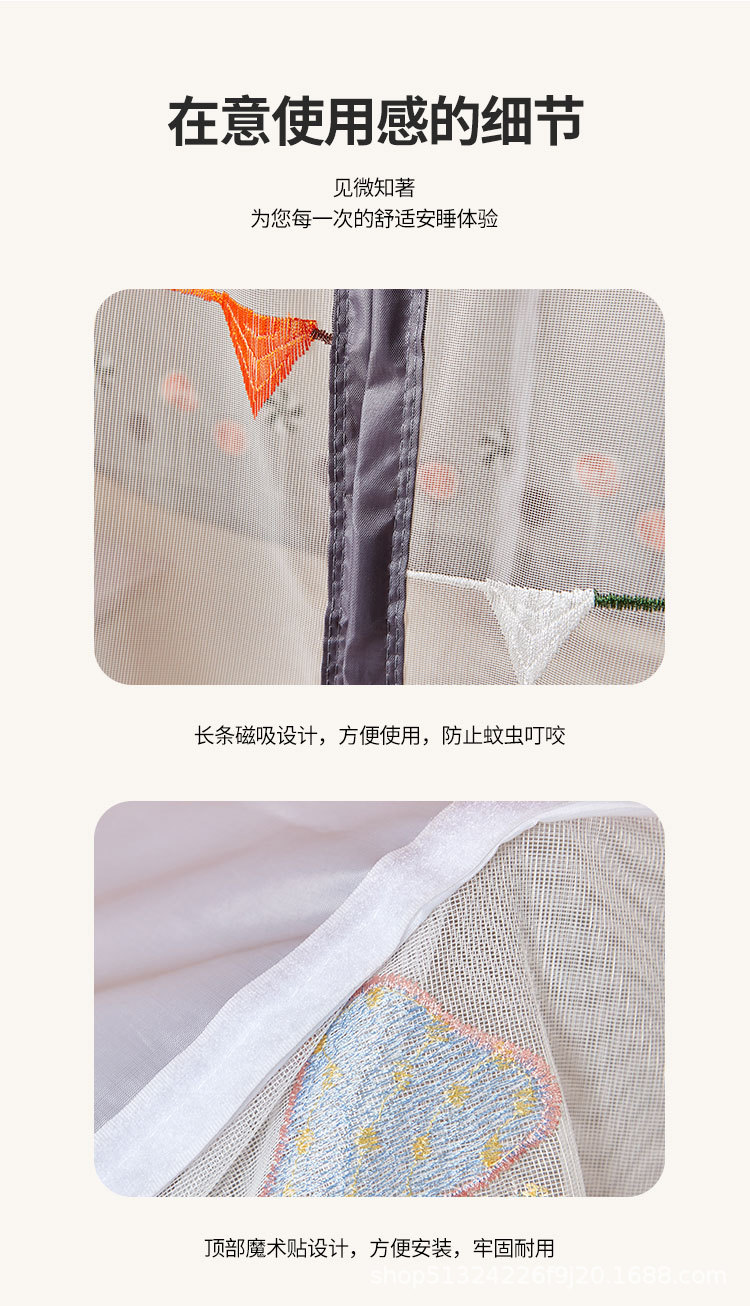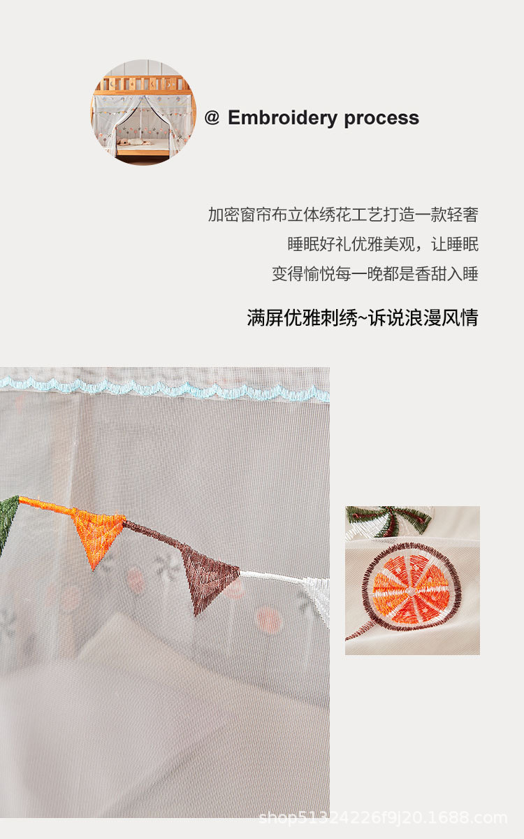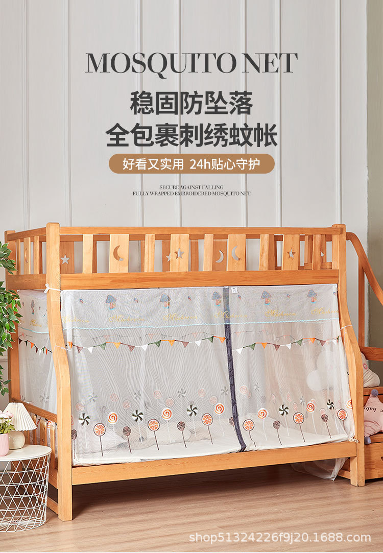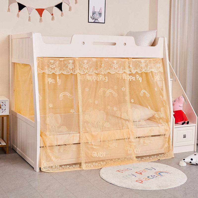子供用ベッドの暗号化蚊帳の上下に台形のはしごを敷いて、子供用ベッドの家庭用に蚊帳を厚くして、ドアを開けて防塵します。