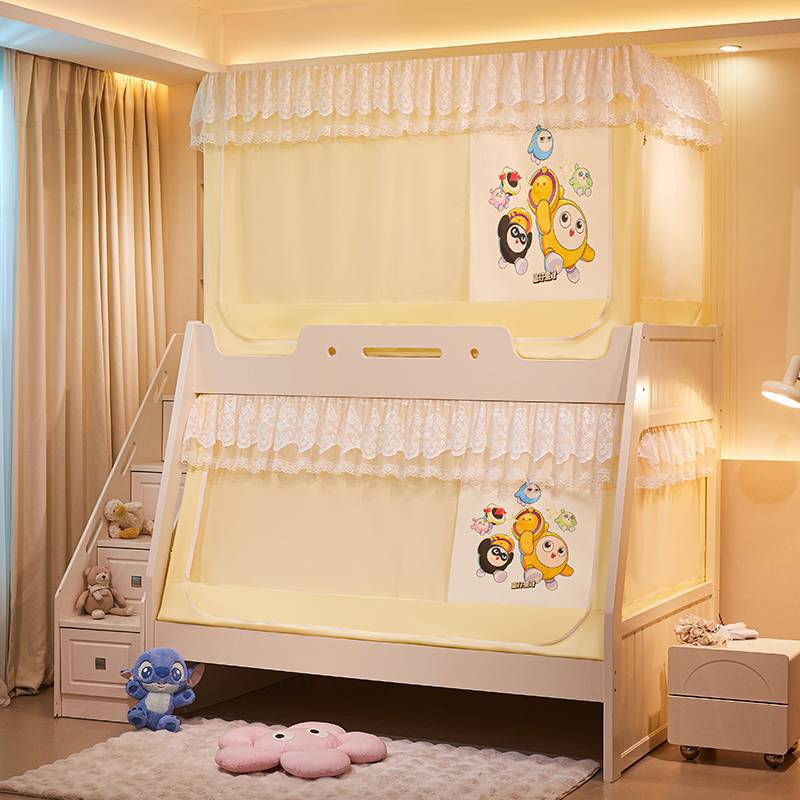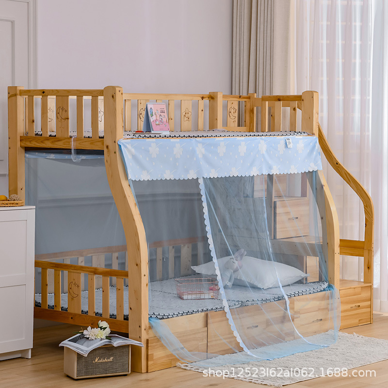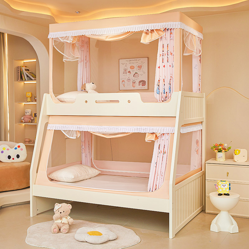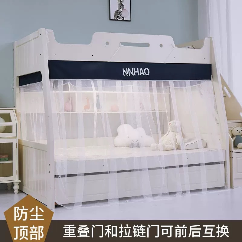 子母床梯形下铺蚊帐1.2m1.5床寝室家用高低床儿童双层床免安装绑