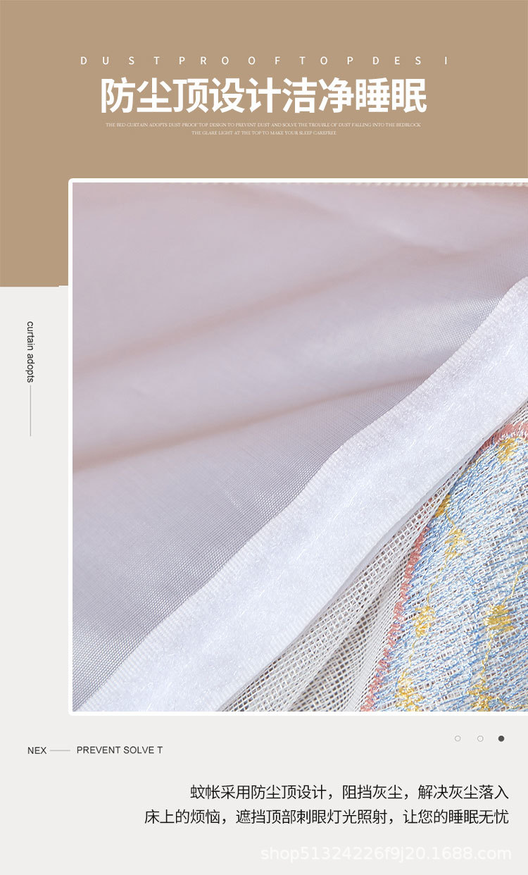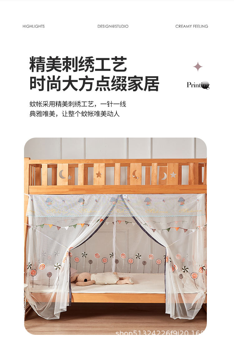 2025新款子母床加长2米蚊帐防尘顶 印花 铁艺全伸缩支架