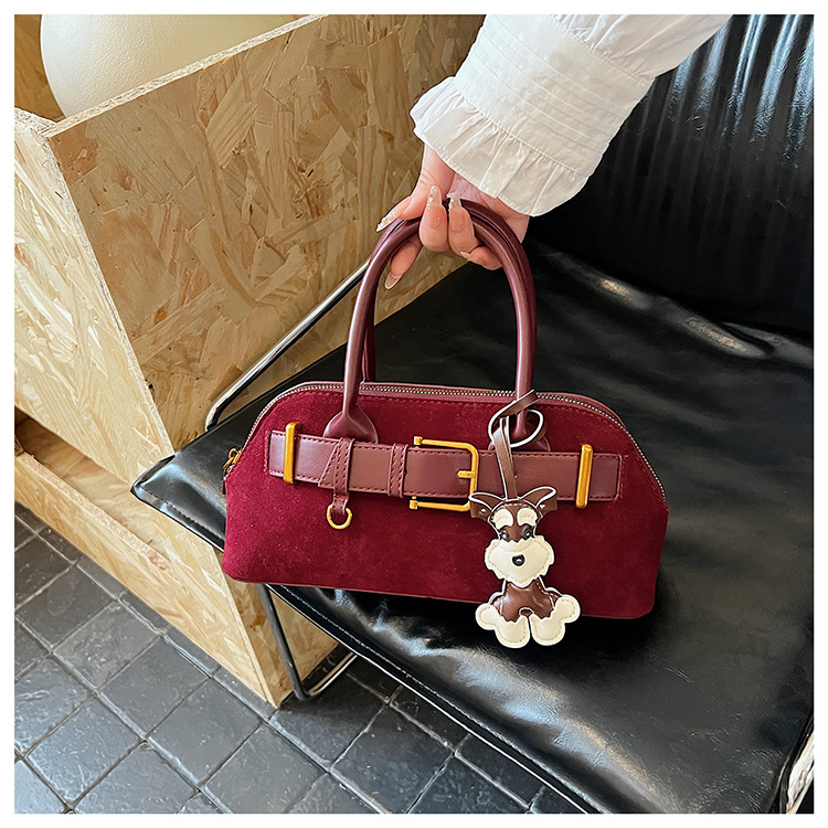 今年流行麂皮绒手提包包女2025秋季新款韩版小众皮带扣单肩斜挎包