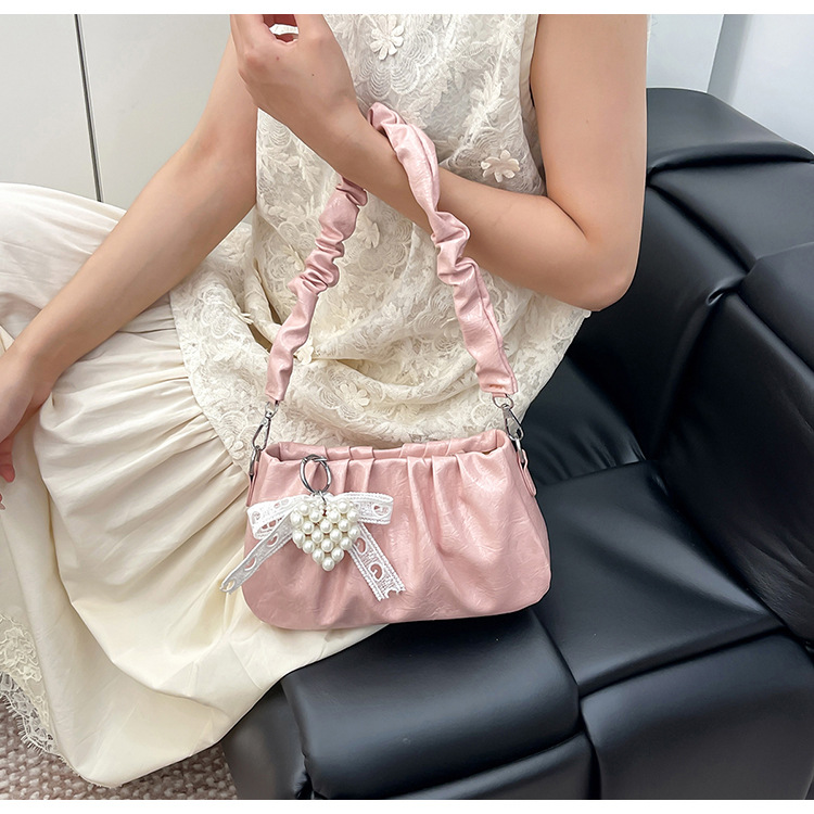 女性のためのニッチプリーツクラウドバッグ 2025 春夏の新しいスタイルの甘いハンドバッグハイエンドシングルショルダークロスボディバッグ