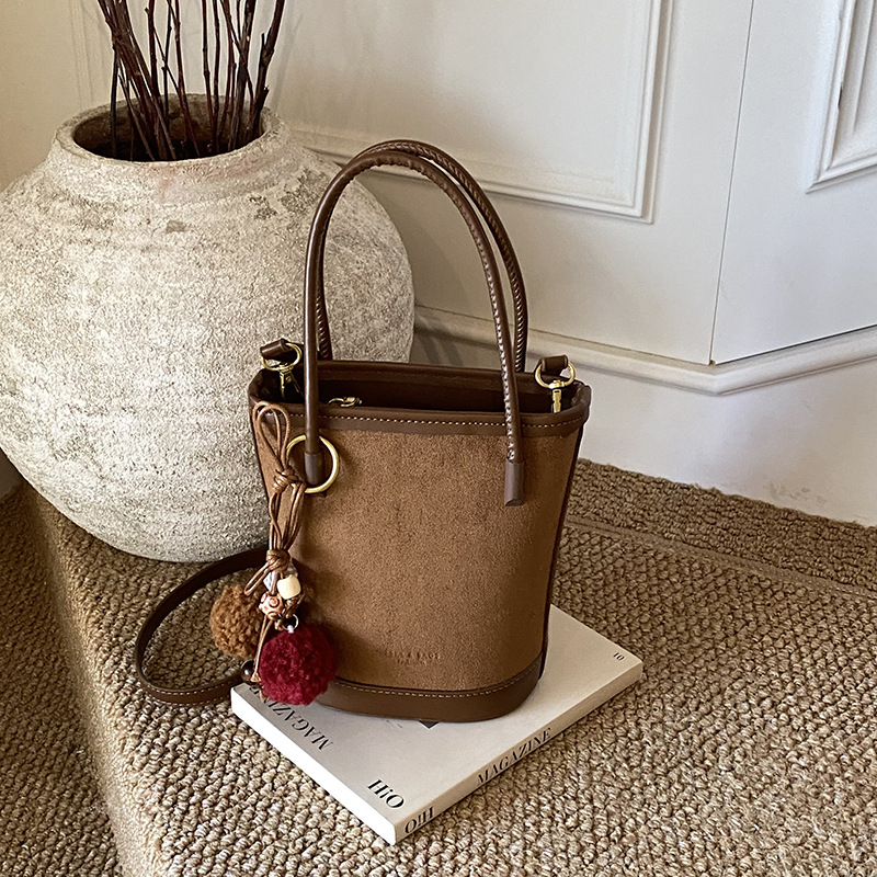秋冬复古麂皮绒水桶包包女2025新款流行百搭手提包通勤单肩斜挎包