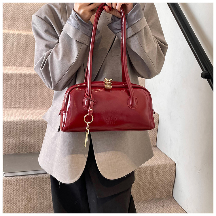 高級感シンプルなレトロなボストンバッグバッグ女性2024秋冬新作ファッション