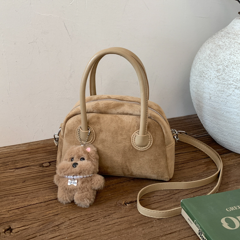 韩版小众复古麂皮绒保龄球手提包包女秋冬新款潮流百搭单肩斜挎包