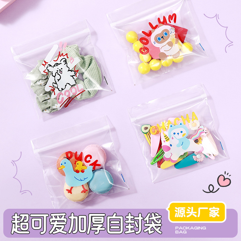 可爱卡通透明加大自封袋皮圈皮筋玩具发夹饰品收纳袋糖果零食包装