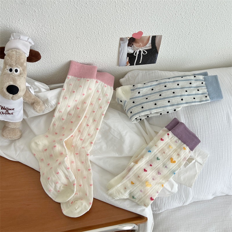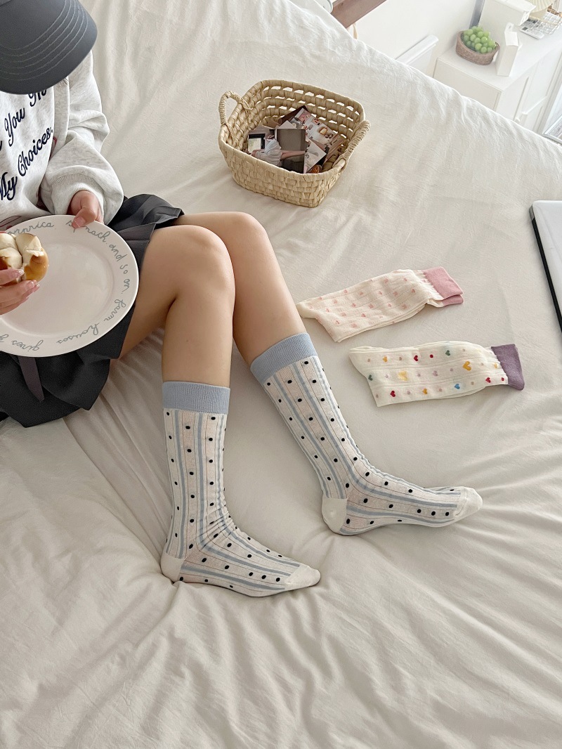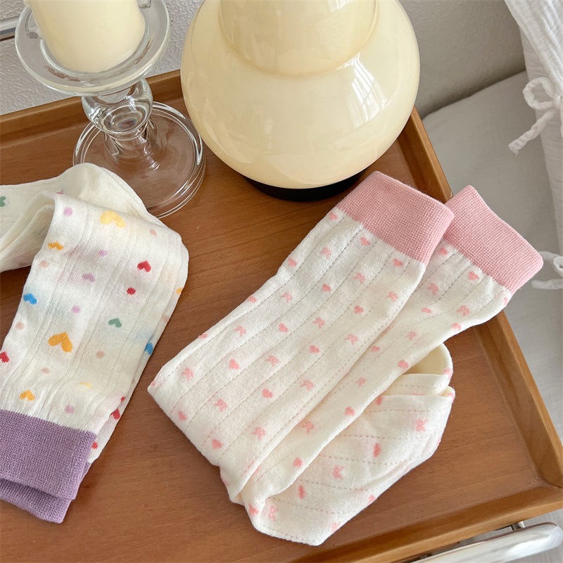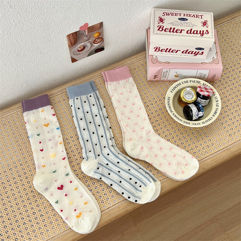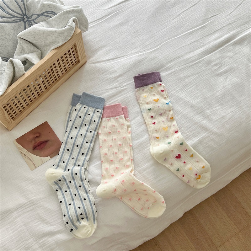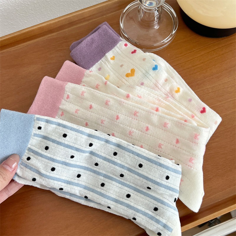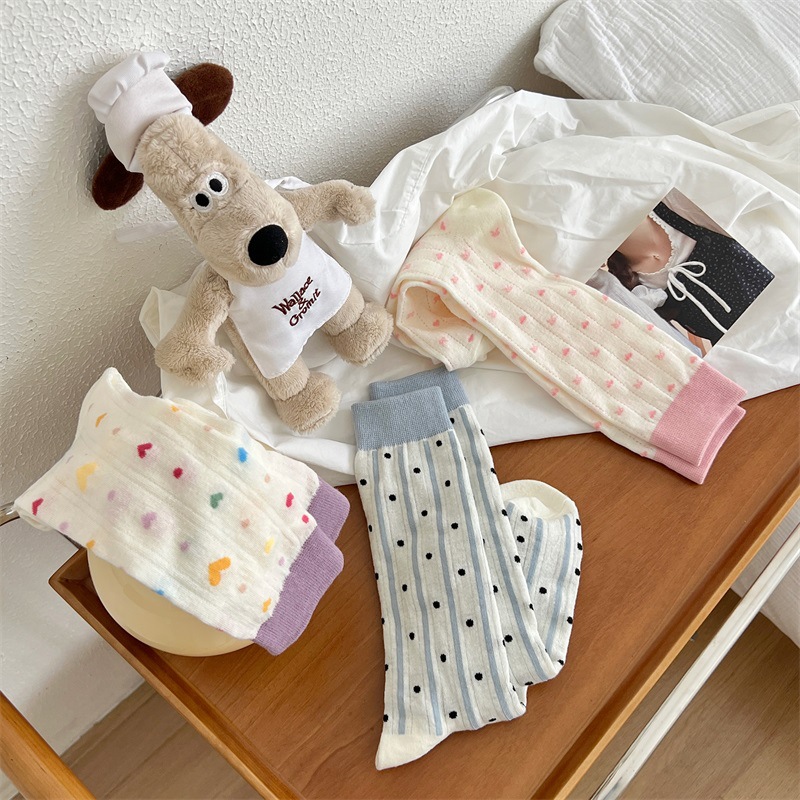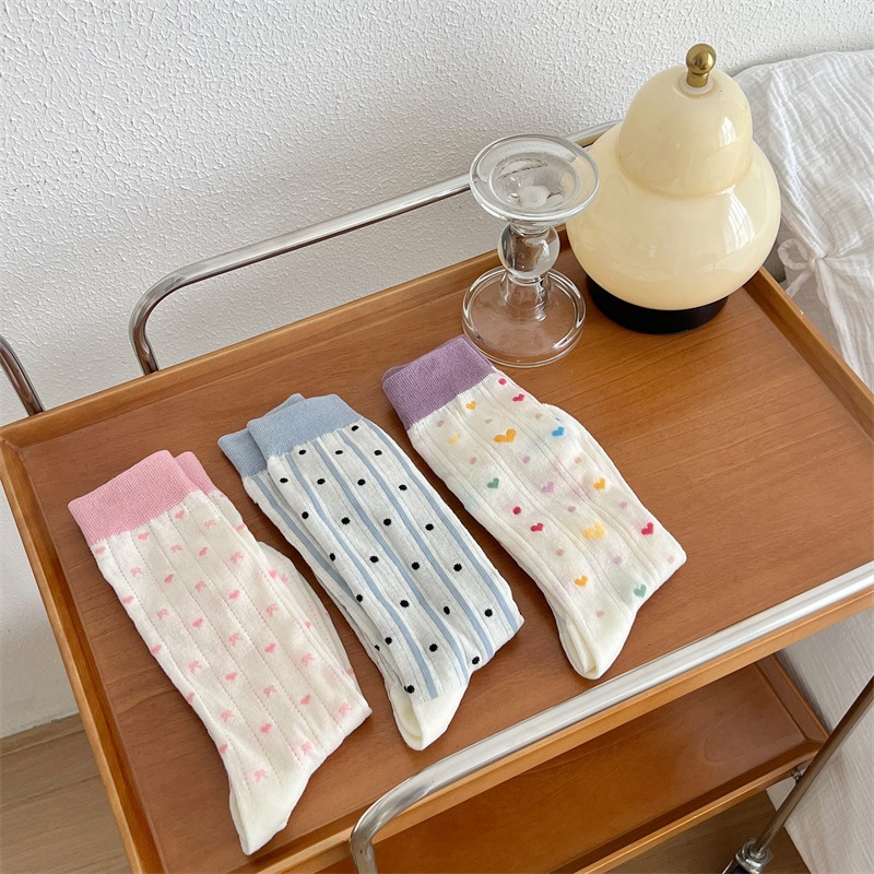 IOULOR カラフル水玉ソックス 吸汗性カジュアルコットンソックス ドーパミンコーデ ミドル丈ソックス 卸売 甘いスタイル