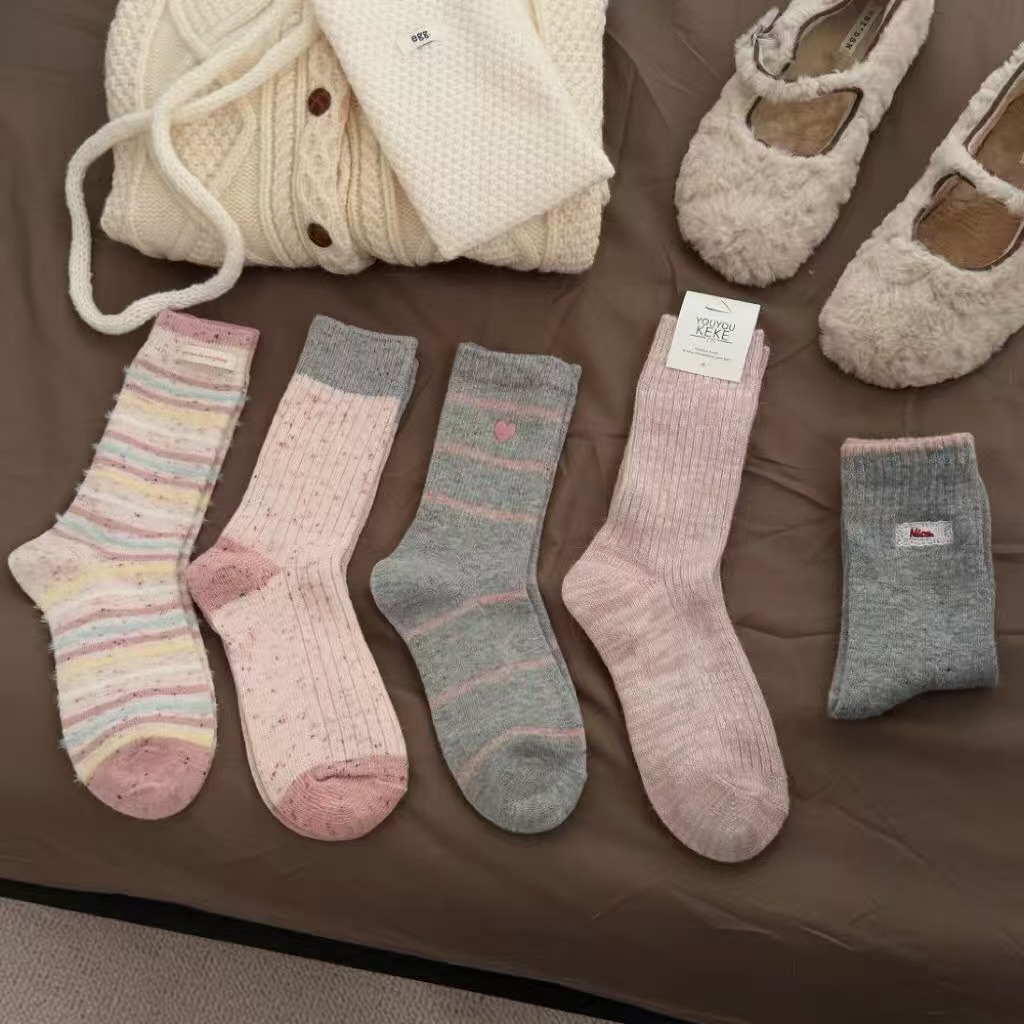 超甜灰粉系羊毛袜~韩系氛围感少女堆堆袜秋冬加厚保暖袜子女hin暖