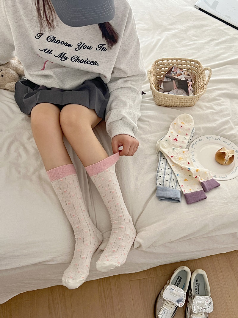 韓国の東大門の愛の波はふくらはぎの靴下をつけます。