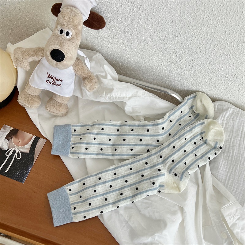 波点袜子女春秋季花边中筒棉袜美拉德咖色配勃肯鞋韩版简约堆堆袜