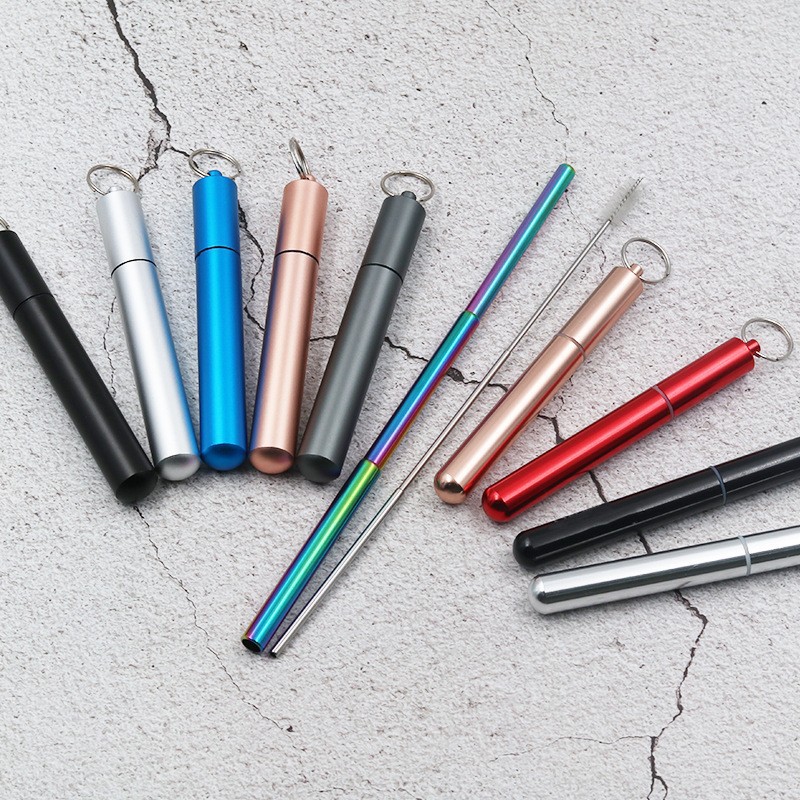 メーカー卸売り創意伸縮ストローステンレス304食品級携帯人気折りたたみ伸縮収納吸引