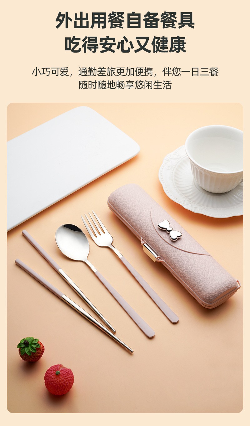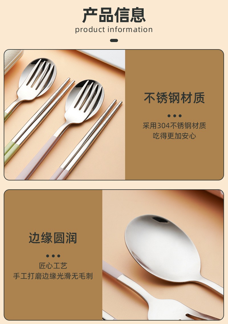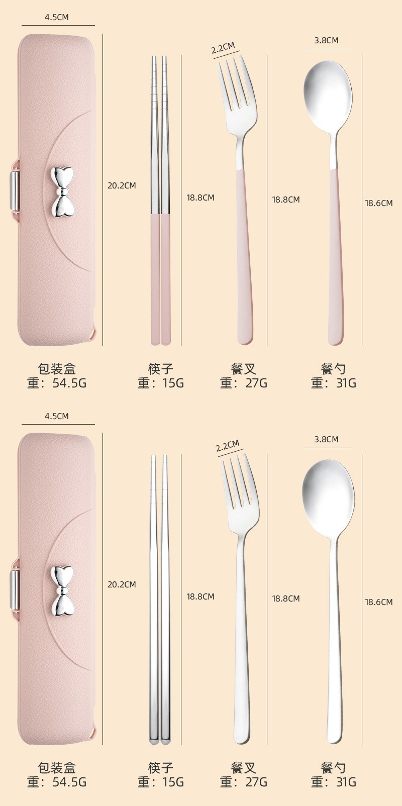 Ins新品304ステンレス便利食器スプーンフォーク箸三点セット学生アウトドア旅行ギフト食器カバー