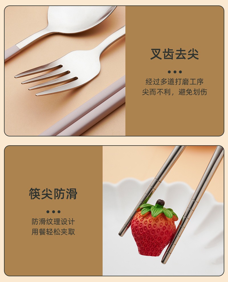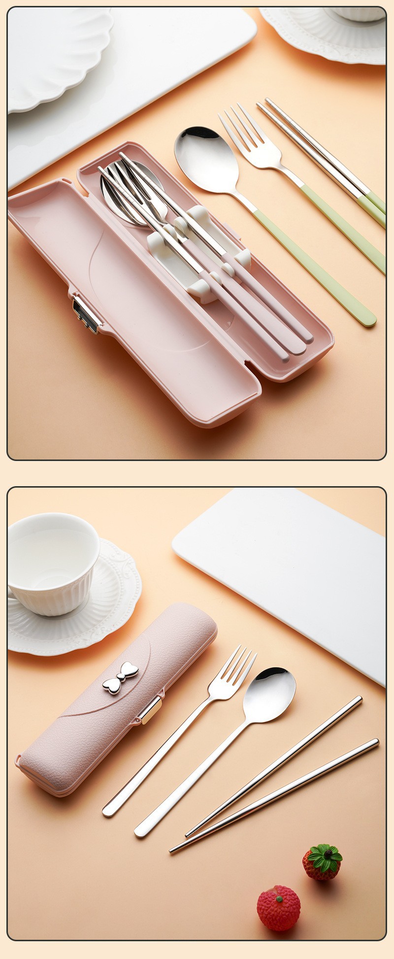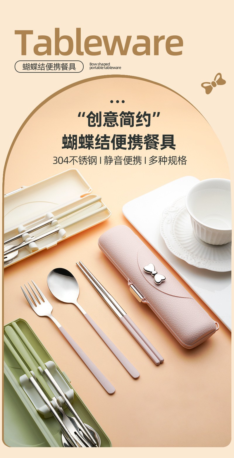 Ins新品304ステンレス便利食器スプーンフォーク箸三点セット学生アウトドア旅行ギフト食器カバー