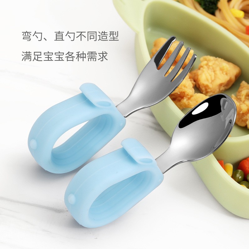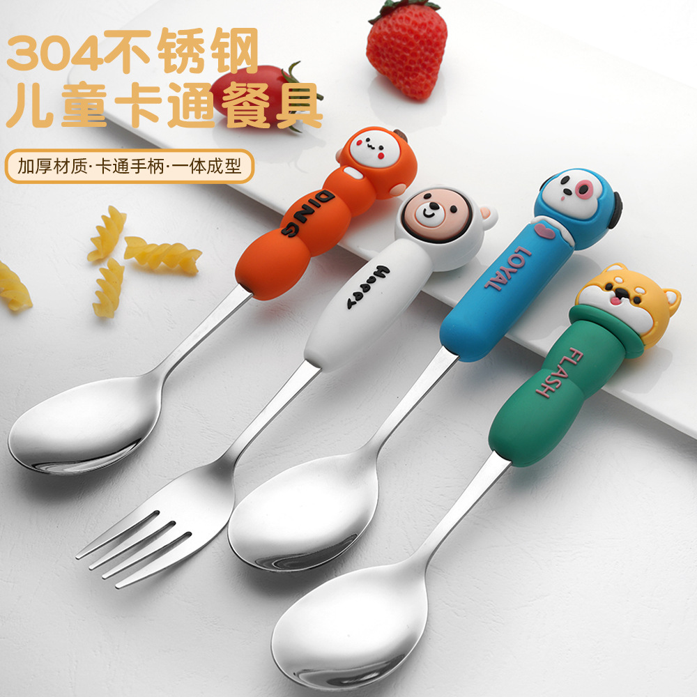 新商品304ステンレススプーンアニメ創意シリカゲル子供スプーン補助スプーン子供スプーンフォーク携帯セット