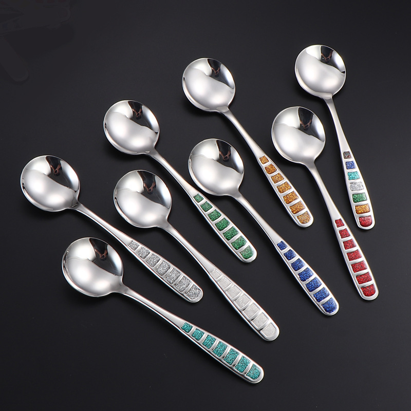 304ステンレス高颜値スプーン虹スプーン七彩滴糊スプーン洋食スプーン家庭用スープ