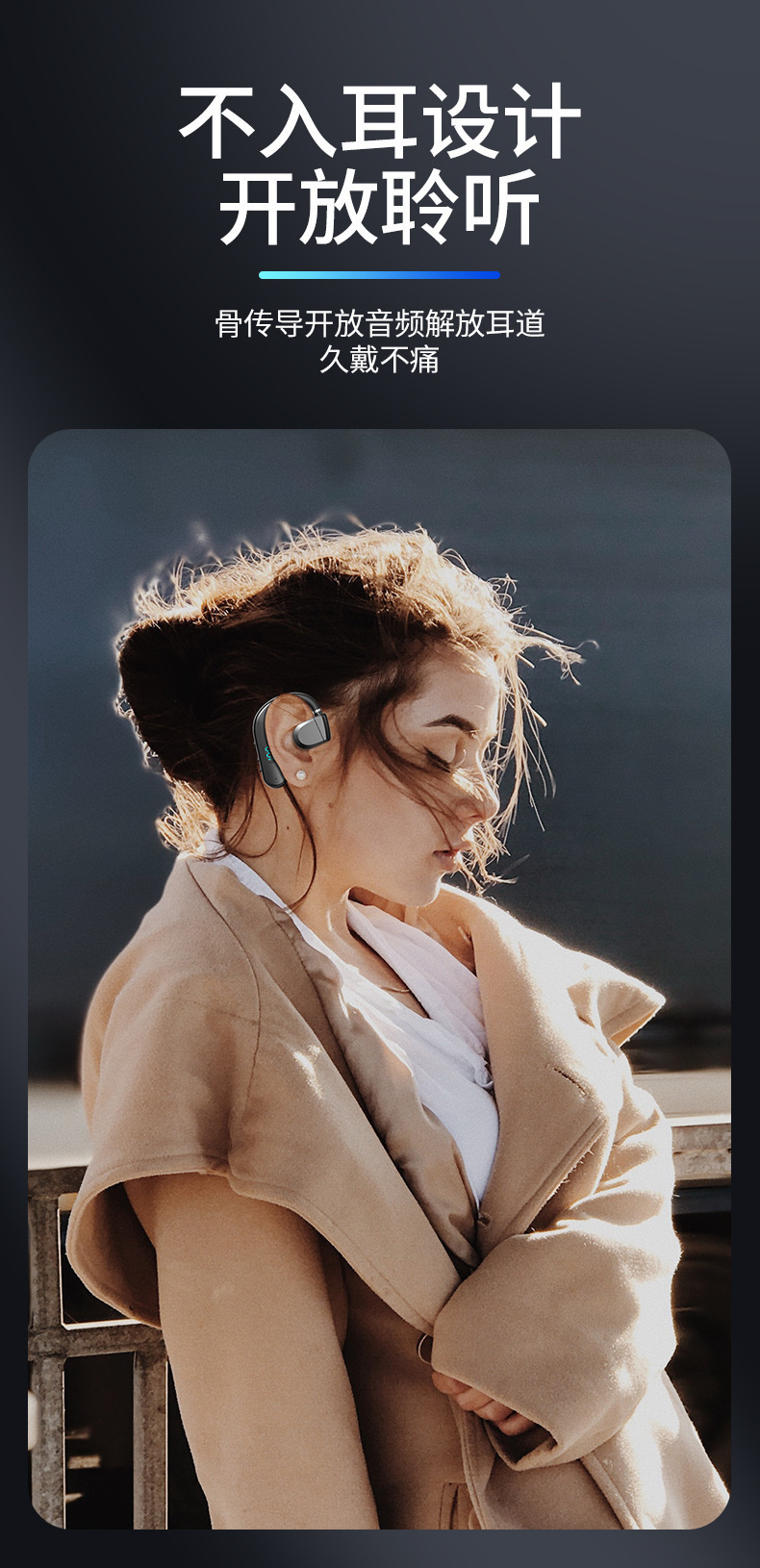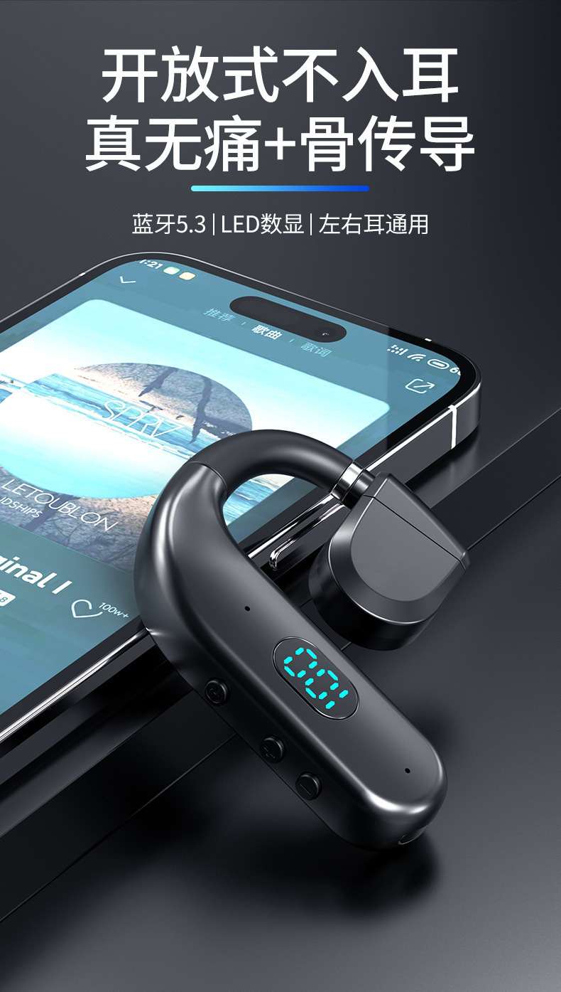 OWSワイヤレスビジネスbluetoothイヤホン耳に入らない空気伝导左右耳通用超长待机大容量5.3