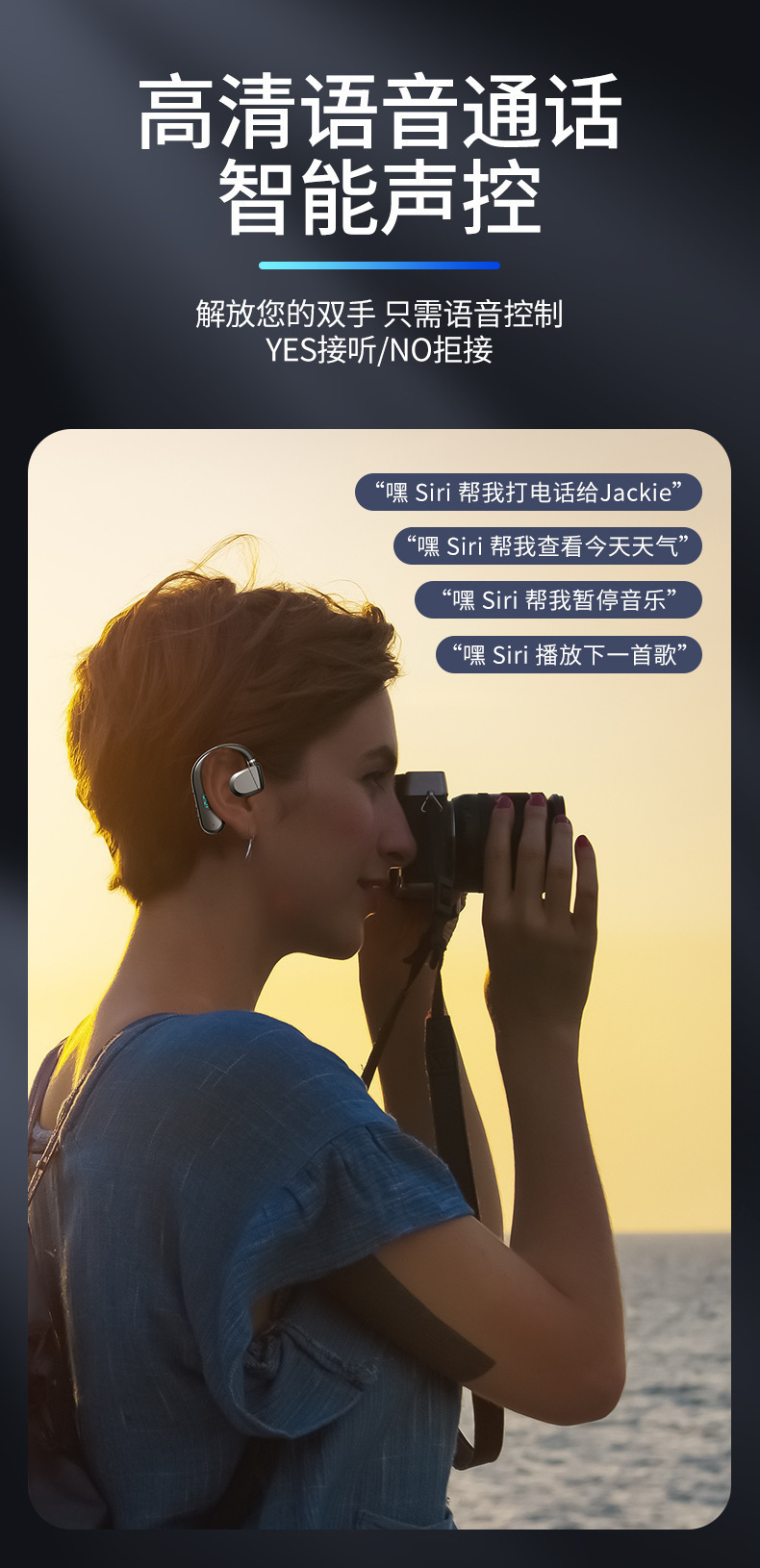 Ai 音声制御ワイヤレス Bluetooth ヘッドセット 新しい 2025 耳掛けタイプ 超長バッテリー寿命 左右着用 運転専用