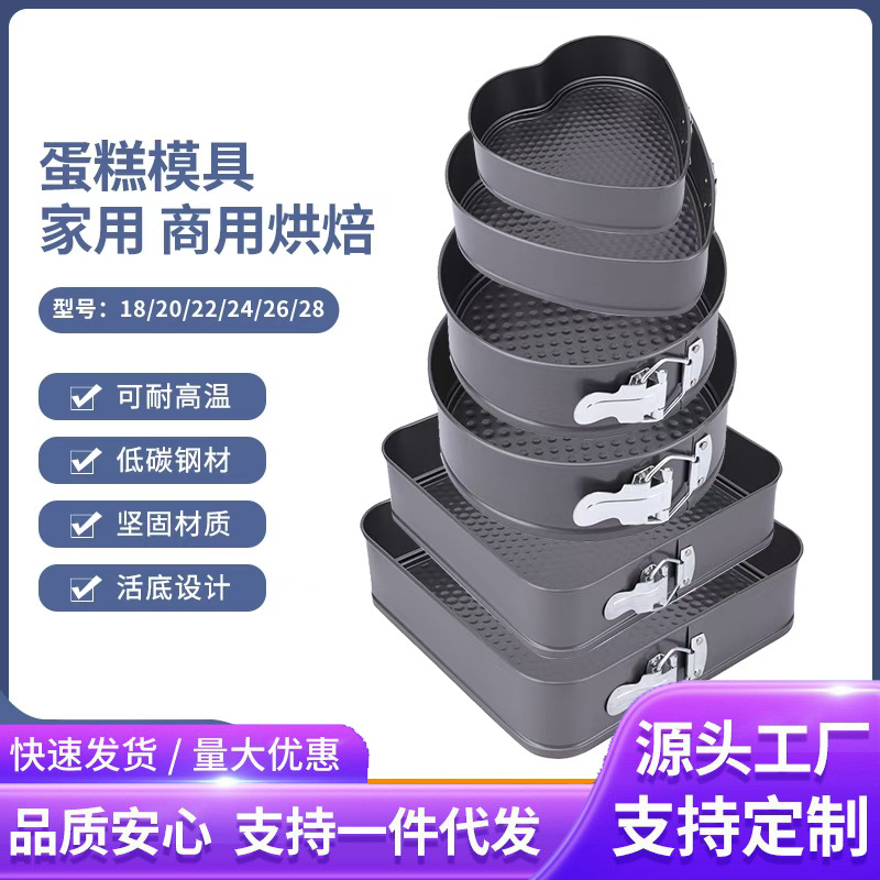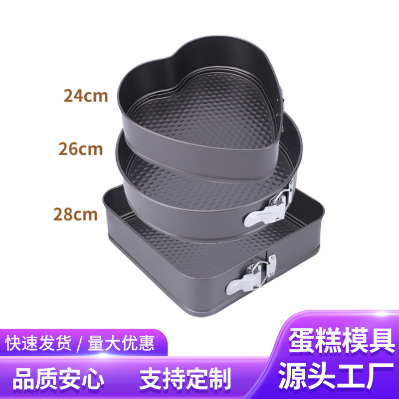クロスボーダー炭素鋼ベーキングラウンドハートスクエアバックルモールド漏れ防止ライブボトム簡単離型家庭用シフォンケーキベーキングパンセット